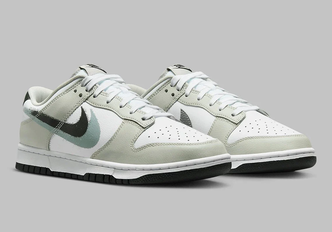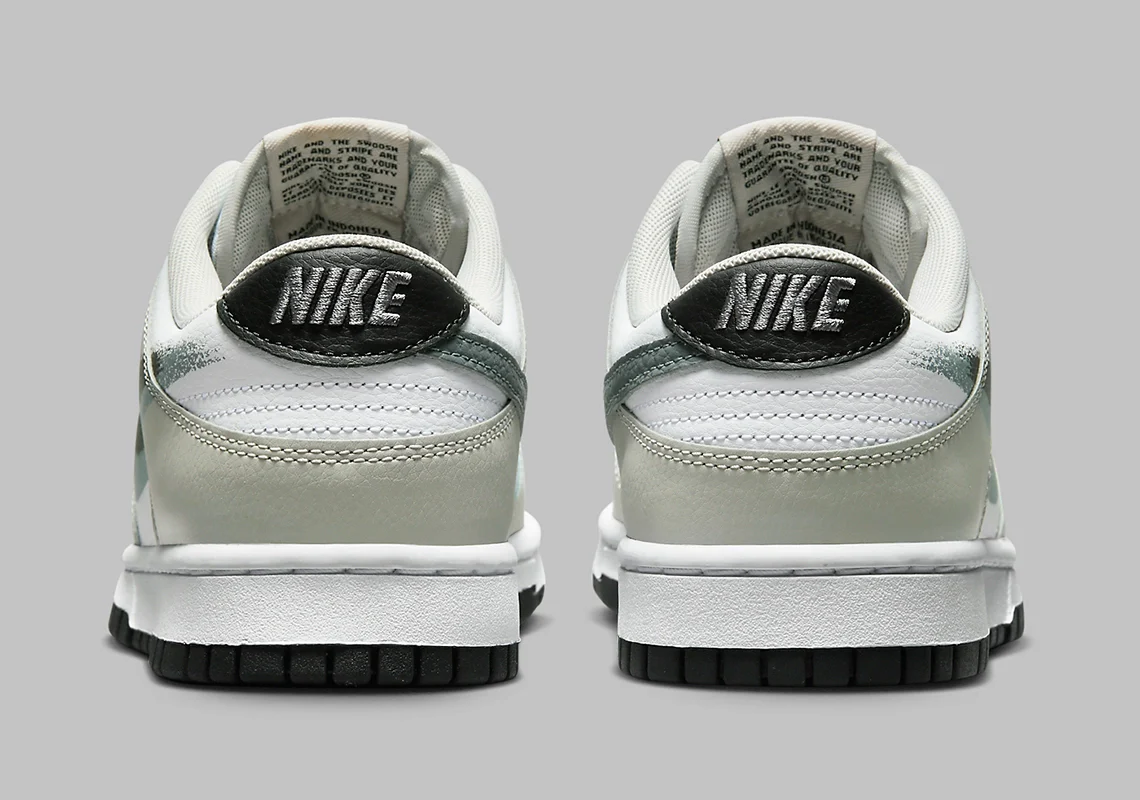 Alors que la Nike Dunk Low continue de figurer en tête des listes de souhaits partout dans le monde, la silhouette continue d’expérimenter des colorations, des collaborateurs et des histoires. Récemment, le design iconique de Peter Moore est apparu avec des swooshes au pochoir. A l’instar d’autres offres Nike Sportswear avec un marquage similaire, la paire qui vient de faire surface adopte une combinaison de couleurs grises qui joue sur le thème du style pochoir. Les couches de base prennent le plus clair des tons inclus, tandis que les superpositions de cuir autour de l’avant-pied, le long de la languette et autour du talon prennent une teinte gris clair. Sous le pied, la Nike Dunk reste simple avec une semelle intermédiaire « incolore » et une semelle extérieure noire qui rappelle les swooshes du pochoir sur les parois latérales.