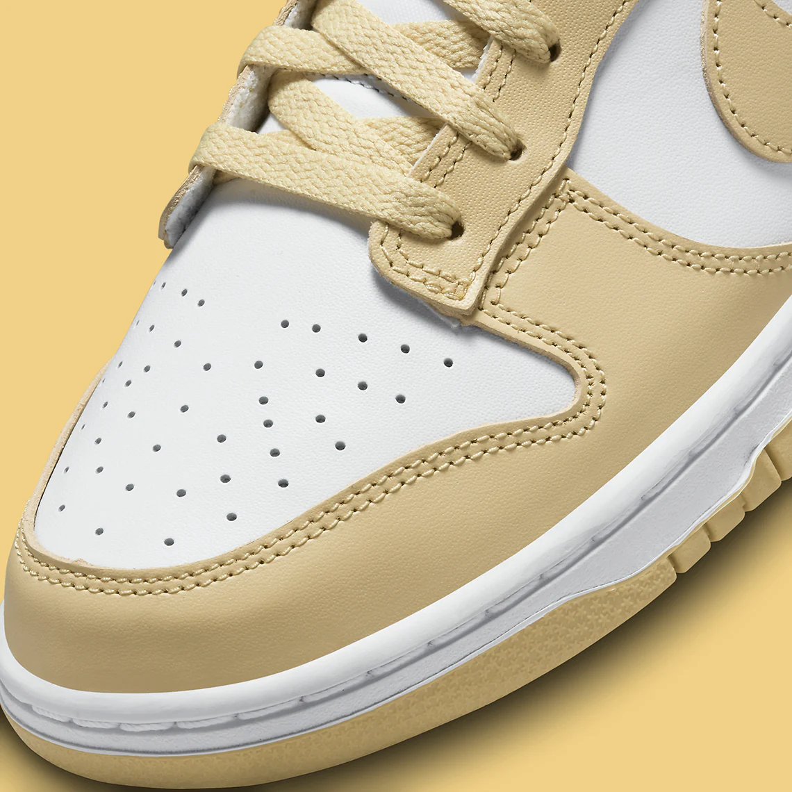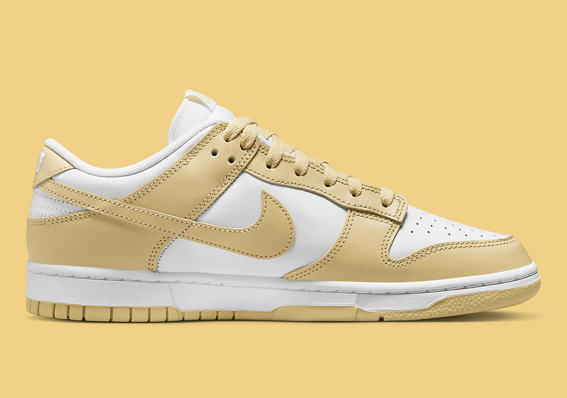 La Nike Dunk Low sera aussi présente en 2023 qu’en 2022. En plus d’une nouvelle gamme d’offres collaboratives, la silhouette proposera une série de styles en ligne supplémentaires, du « Noble Green » à ce nouveau coloris « Tan/White« . Reprenant le look bicolore classique, cette Dunk Low n’est qu’un exercice de base.