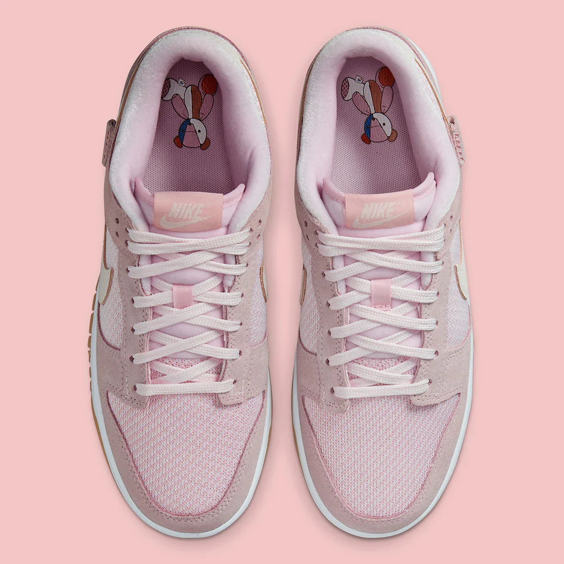 Les lacets, la doublure intérieure et le marquage « NIKE » à l’arrière suivent le mouvement dans une teinte saumon clair, tandis que la languette arrière et le Swoosh présentent des accents « Sail » avec une étiquette suspendue comprenant un script Nike sarcelle et un mini swoosh orange. Sous le pied, les choses sont finies avec la combinaison classique de la semelle intermédiaire blanche et de la bande de roulement en gomme, tandis que le modèle homonyme présente des motifs d’ours en peluche le long des semelles intérieures et du panneau en daim des talons médians.