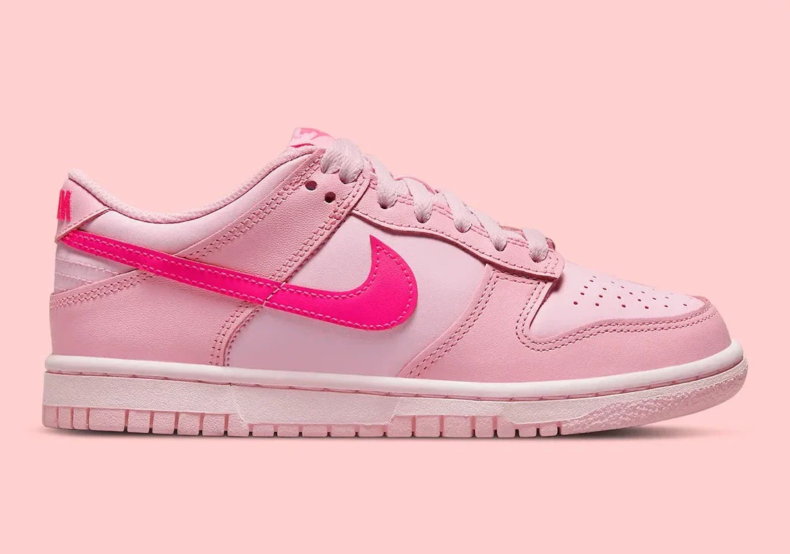 Semblable aux offres précédentes, la chaussure s’offre entièrement en rose, avec une légère variation remplaçant le blanc sur le panneau central, la pointe, le col et la semelle. Les choses s’assombrissent, quoique légèrement, à mesure qu’elles se déplacent vers les superpositions, dont la teinte est encore un peu plus brillante que celle du Swoosh ainsi que de la marque adjacente.