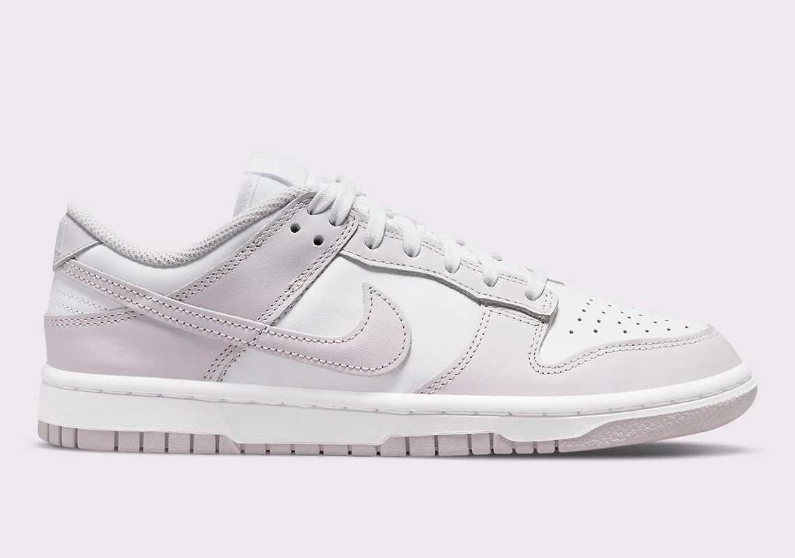 La Nike Dunk Low « Venice » est un coloris réservé aux femmes de la chaussure de basket-ball et de style de vie classique avec un design bicolore attrayant, blanc et violet. Infiniment polyvalente, l’édition « Venice » de la Dunk Low pour femme présente du cuir blanc sur la pointe perforée, le panneau central, le col et le talon. La base en cuir de couleur neutre contraste avec les superpositions en cuir Venise ou violet clair et la marque Swoosh sur les côtés. La marque « Nike » ton sur ton est cousue sur la languette du talon en cuir de couleur Venise. L’étiquette de la languette présente des détails « Nike » et Swoosh rétro qui sont cohérents avec l’esthétique rétro de la Dunk. Une semelle intercalaire de couleur crème est associée à une semelle extérieure en caoutchouc Venice sous le pied.