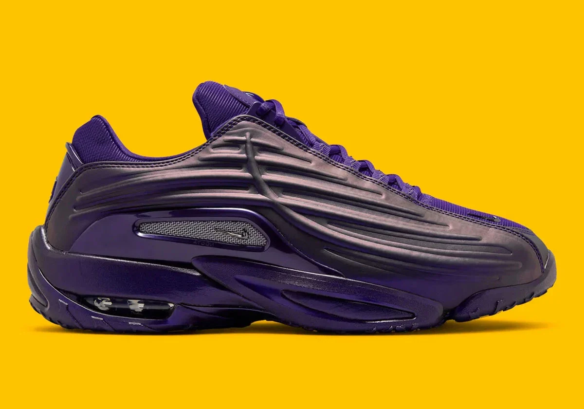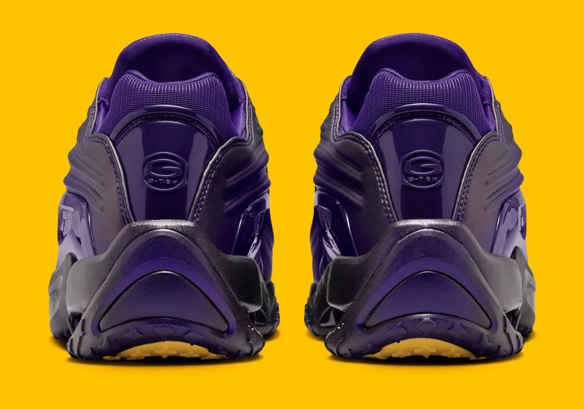 La paire dont il est question ici a déjà connu une année importante, avec les Foamposites Eggplant qui sont arrivées sur les étagères en février, suivies d’une LeBron 4 « Eggplant » peu de temps après. Étant donné que la NOCTA Hot Step 2 est déjà axée sur des matières synthétiques lourdes et une base épaisse, la réfraction d’un modèle partageant ces qualités est un choix facilement synergique. Les murs latéraux reflètent la composition de cette chaussure de manière assez fidèle, en poursuivant la tonalité royale à travers la boîte à orteils et la languette en mesh.