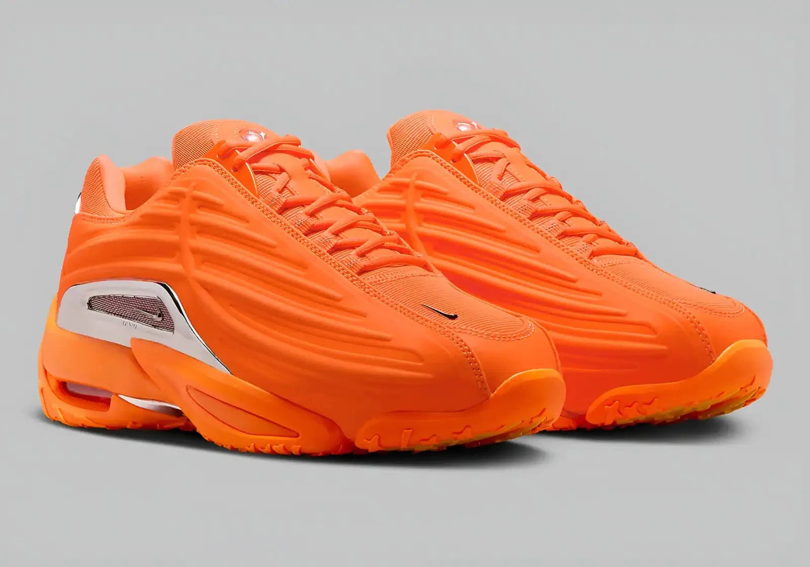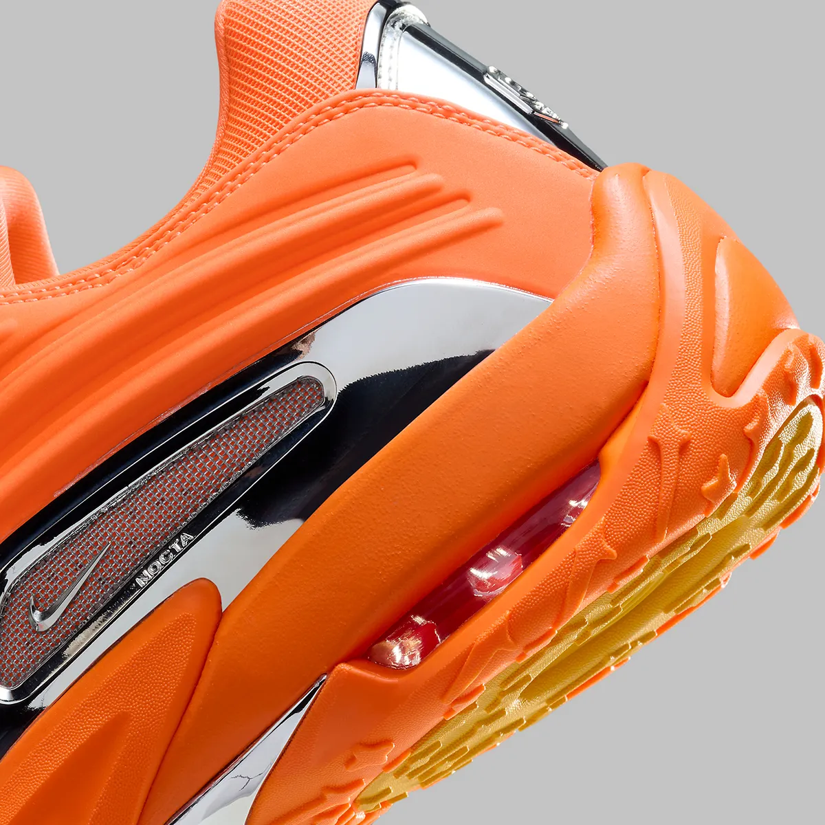 Dans un Orange Total vibrant, la chaussure associe une maille respirante à des superpositions de cuir synthétique pour un look futuriste. Des accents chromés ornent les mini logos Swoosh et la superposition TPU au milieu du pied, pour plus de sophistication. La marque NOCTA sur la languette souligne l’exclusivité de la collaboration, tandis que la semelle intermédiaire en mousse avec amorti Air promet à la fois style et fonctionnalité.