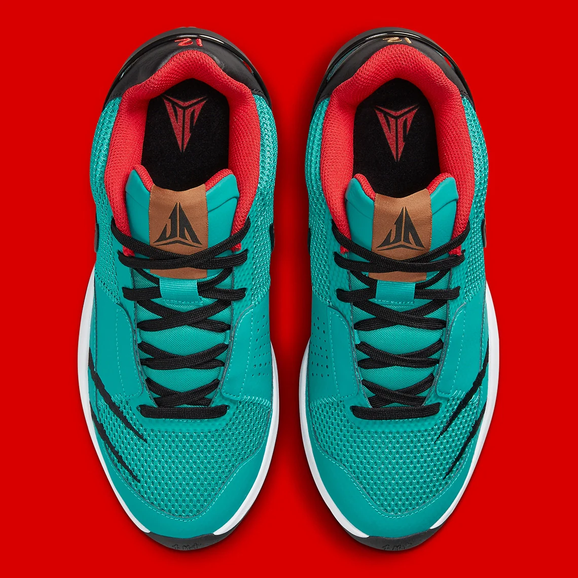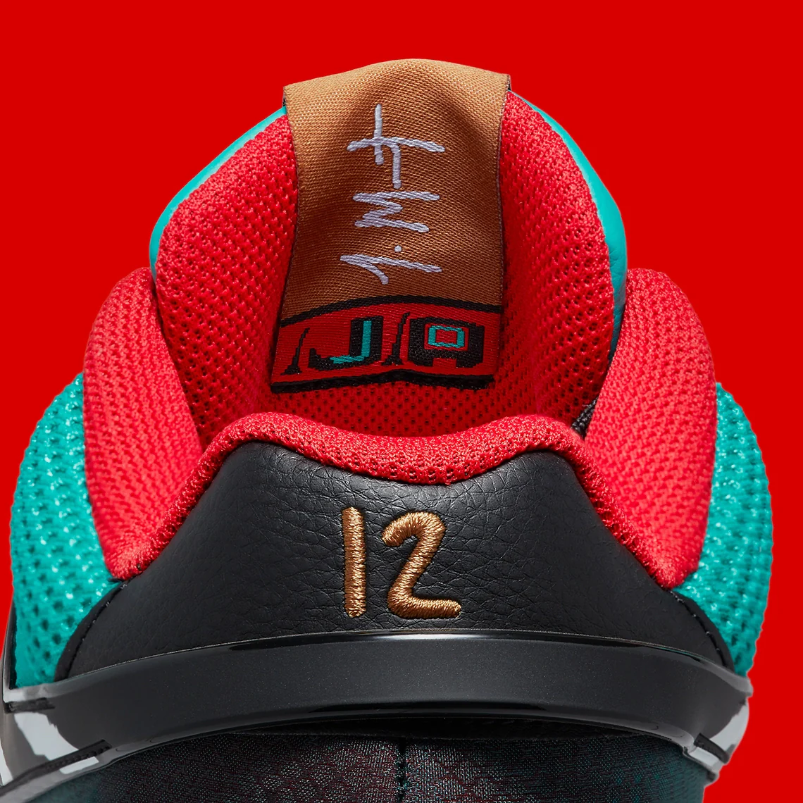 Baptisée « Scratch« , cette Ja 1 rend hommage à la palette initiale de turquoise, rouge et noir de l’équipe d’expansion de la fin des années 90. La tige de la silhouette est ornée d’une multitude d’outils et arbore la teinte bleue vibrante synonyme, tandis que des accents rouge cramoisi ornent la doublure de la chaussette et la languette. Le manteau de fourrure marron du grizzly se retrouve sur la languette de la chaussure et sur le talon gauche brodé du numéro 12, tandis que le contrefort adjacent est associé aux lacets pour un ton noir contrasté. La collection de teintes choisies n’est pas le seul embellissement honorifique, puisque des rayures noires et blanches imitent l’attaque acharnée de la All-Star vers le verre avec des marques de griffes le long de l’avant-pied, du Swoosh et de la semelle intermédiaire Air Zoom.