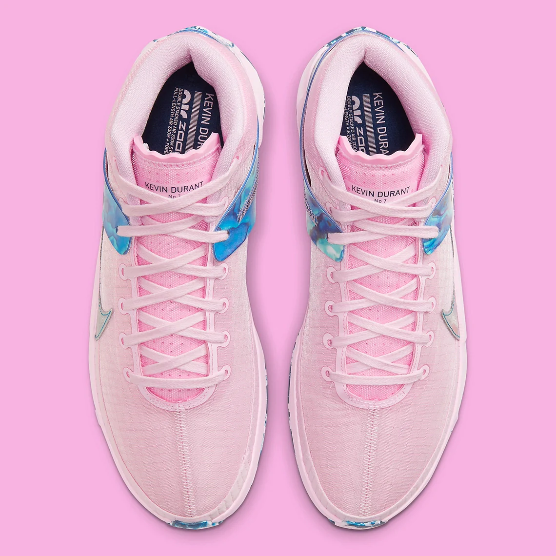 L’hommage de Kevin Durant à sa défunte tante Pearl se poursuit bien au-delà de l’année 2020 avec la Nike KD 13, une silhouette dont le nouveau coloris rose vif agit comme un « rappel de la lutte continue contre le cancer. » Encore une autre sortie dans le cadre du partenariat Kay Yow Cancer Fund de la marque, l’offre caritative commence d’abord par une coloration rose audacieuse qui fait référence au symbole en forme de ruban du cancer du sein. Cette nuance florale fait son chemin dans la plupart des matières synthétiques ripstop de la tige, tandis que la maille, les lacets et les semelles intermédiaires sont d’une teinte adjacente et parfaitement complémentaire. Ensuite, le talon et le rabat de la cheville sont sublimés par une impression multicolore qui ajoute une touche synergique de bleu, de vert et d’autres couleurs dans une marbrure cohésive. Le Swoosh, ensuite, se termine le long du fond bicolore, le logo rendu brillant car il célèbre la vie de la tante de Durant avec un traitement inspiré des perles d’ormeau.