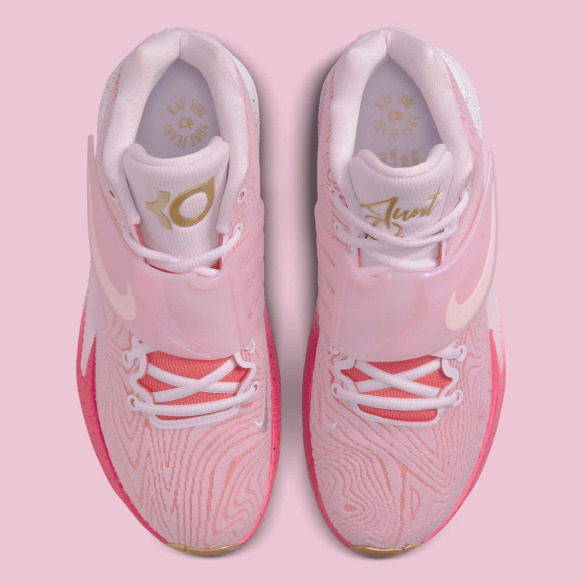 Le coloris rose distinctif des KD 14 Aunt Pearl n’est pas seulement un choix esthétique : il symbolise la lutte contre le cancer du sein. Cette édition arbore :
