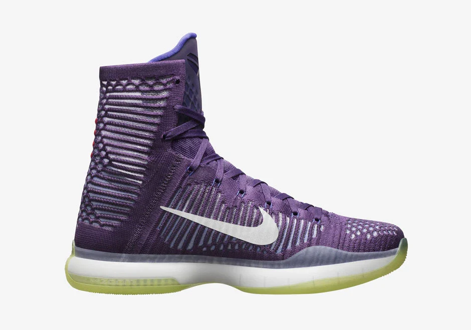 Pour rappel, cette variation de la Nike Kobe 10 Elite est dérivée des Los Angeles Lakers, d’où son surnom de « Team ». Habillée de la teinte violette des Lakers sur toute sa surface, la basket hérite d’une construction supérieure Flyknit avec la technologie Flywire dynamique qui assure la polyvalence des mouvements dans toutes les directions, tout en offrant suffisamment de résistance, de respirabilité et de soutien. Avec son profil haut de gamme, la Nike Kobe 10 Elite est en fait la première chaussure de basket Flyknit construite avec du fil de polyester recyclé, ce qui équivaut à cinq bouteilles en plastique recyclées.