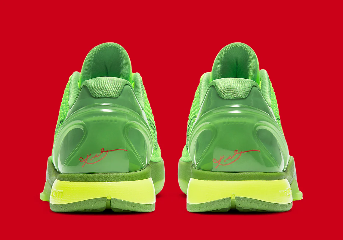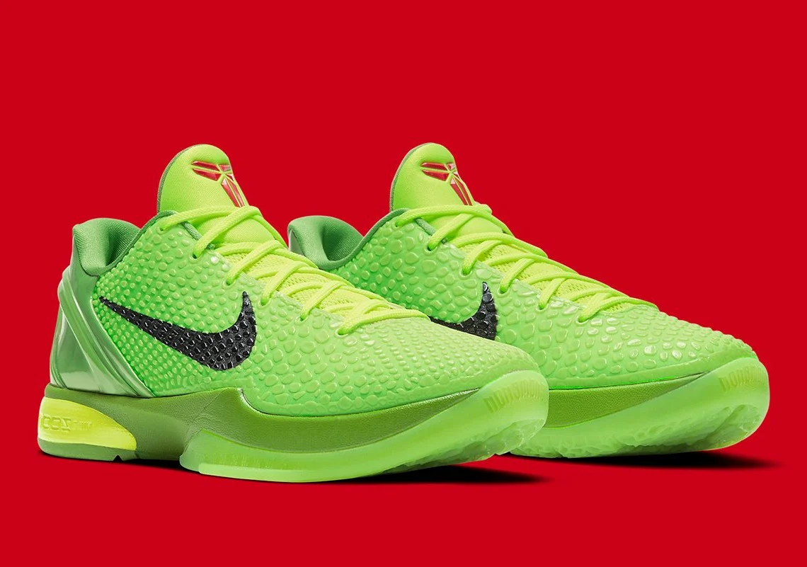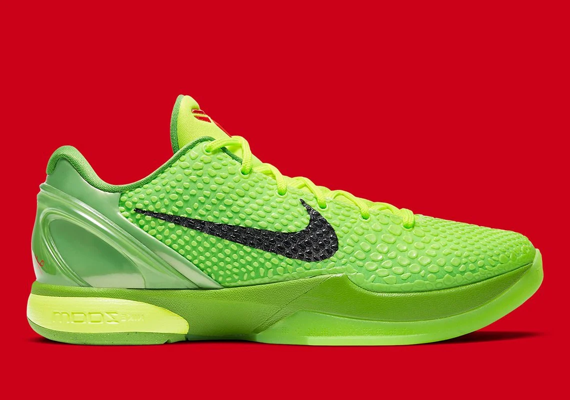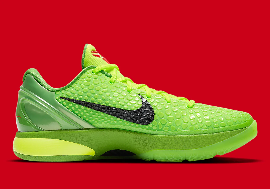 La Nike Kobe 6 Protro Grinch (2020) revisite l’une des sneakers les plus emblématiques du Black Mamba dans une version modernisée, plus performante et plus explosive que jamais. Initialement dévoilée lors du Christmas Game de 2010, cette réédition 2020 conserve l’esprit provocateur du modèle original, tout en intégrant les améliorations “Protro”pensées pour le jeu d’aujourd’hui.
