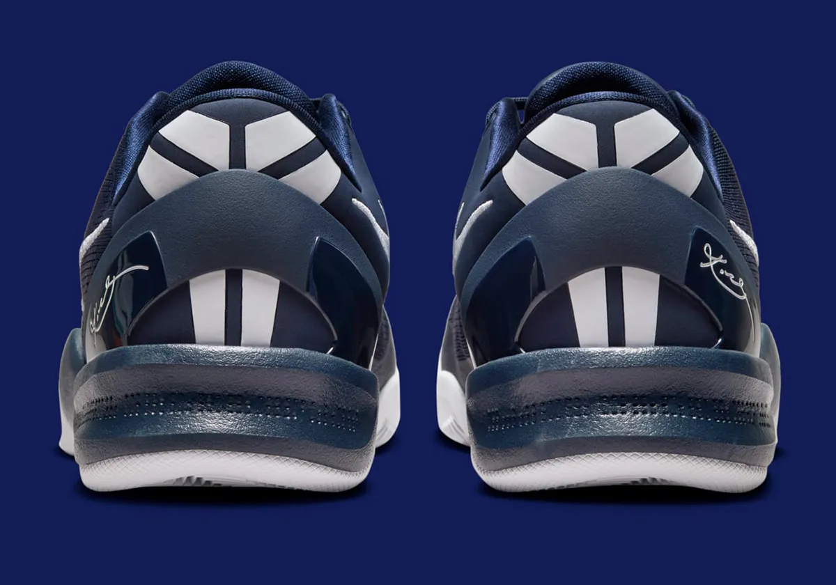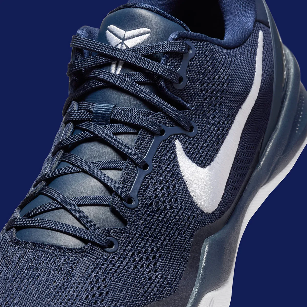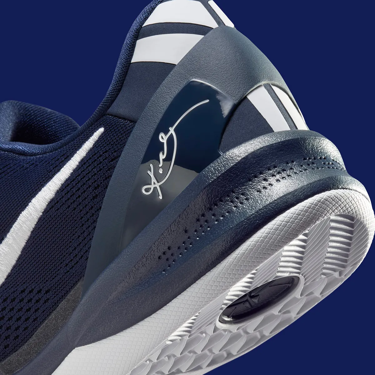 Nike continue d’élargir la gamme Kobe 8 Protro avec une nouvelle édition « College Navy », venant compléter les récents coloris « University Red » et « Wolf Grey » pour l’automne 2024.