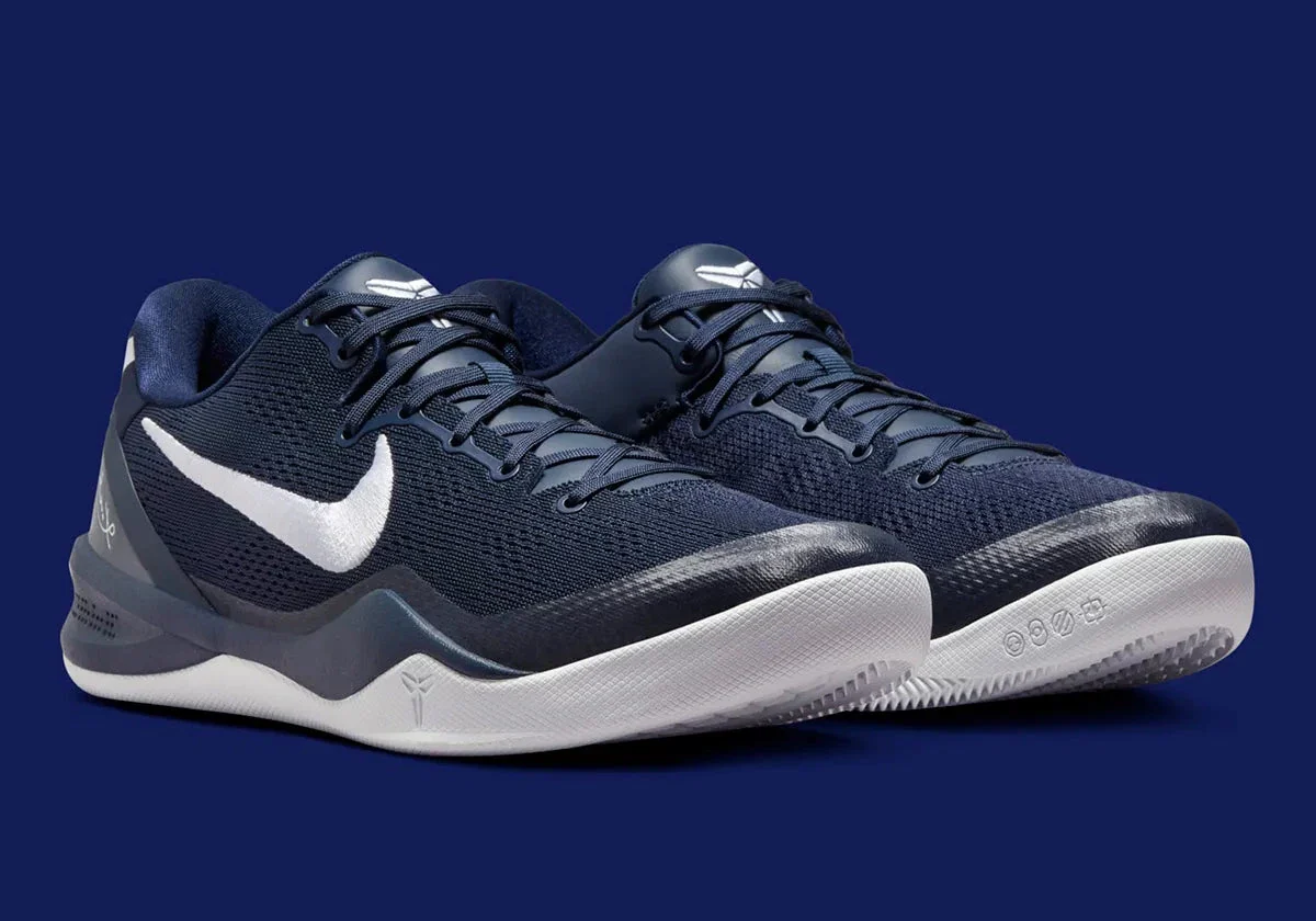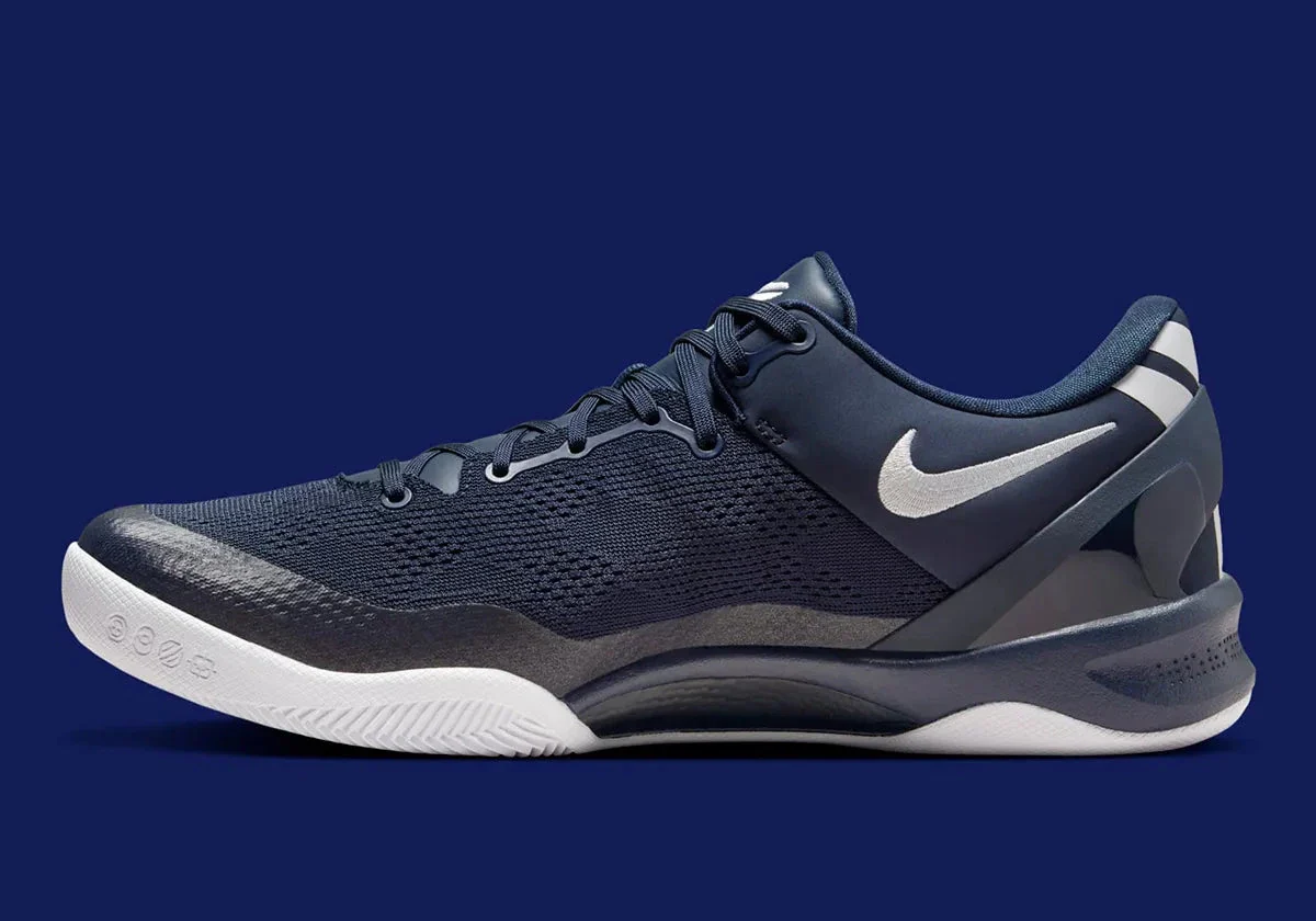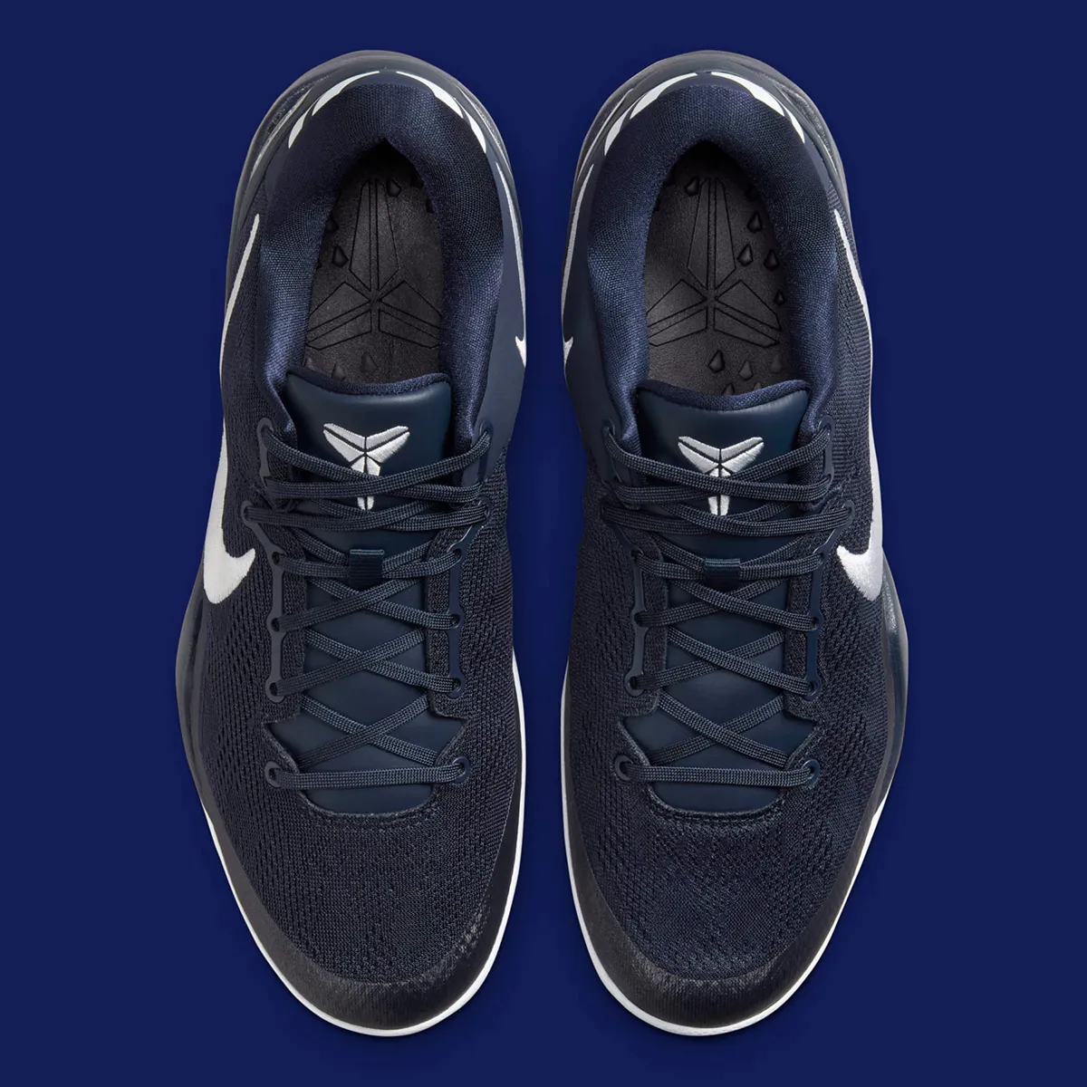 Nike continue d’élargir la gamme Kobe 8 Protro avec une nouvelle édition « College Navy », venant compléter les récents coloris « University Red » et « Wolf Grey » pour l’automne 2024.