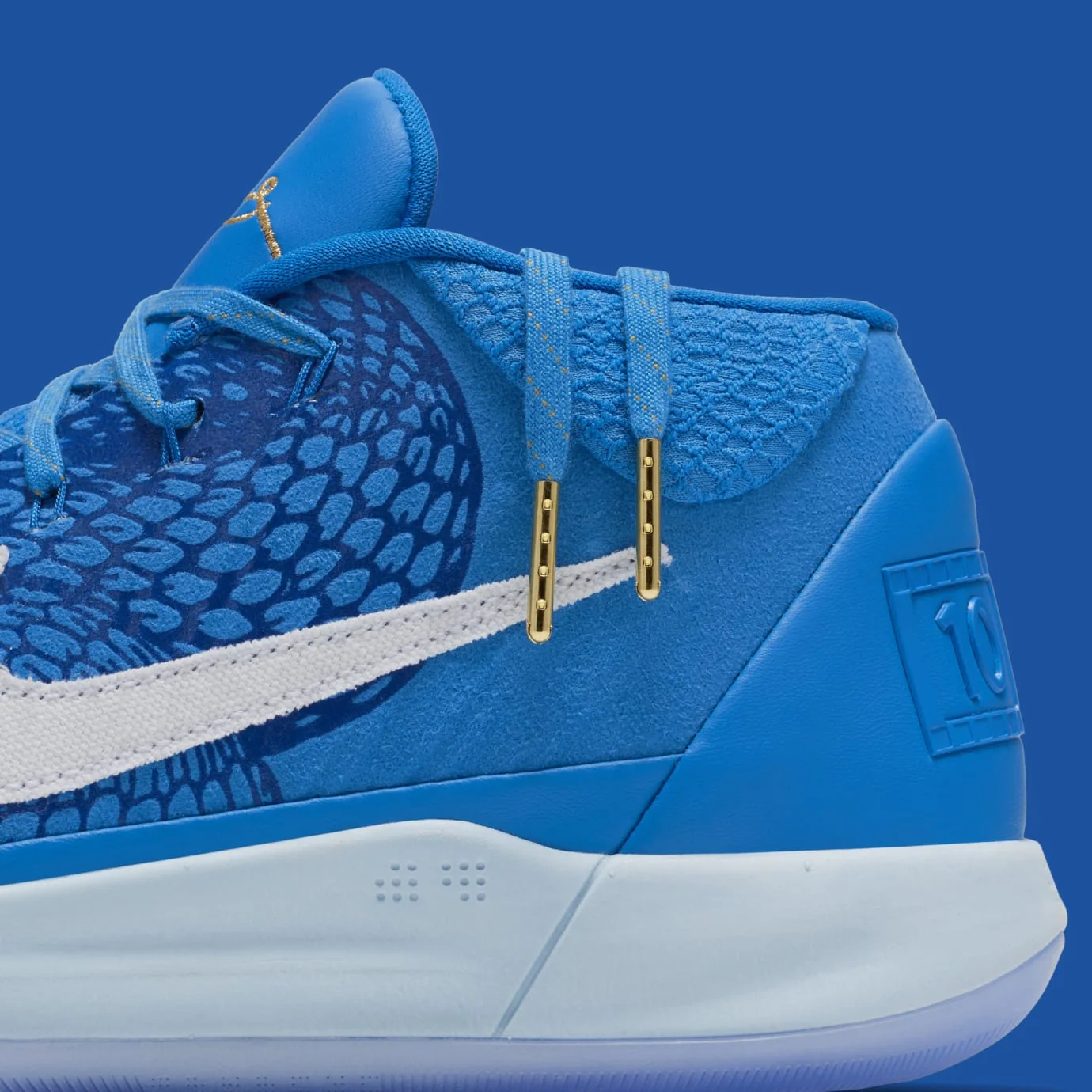 La Nike Kobe A.D. “DeMar DeRozan Blue” est une Player Exclusive (PE) spécialement conçue pour DeMar DeRozan, l’un des plus fervents héritiers du style et de la philosophie de Kobe Bryant. Véritable hommage au lien entre les deux joueurs, cette édition combine élégance minimaliste et performance de haut niveau, à l’image du jeu fluide et précis du meneur.