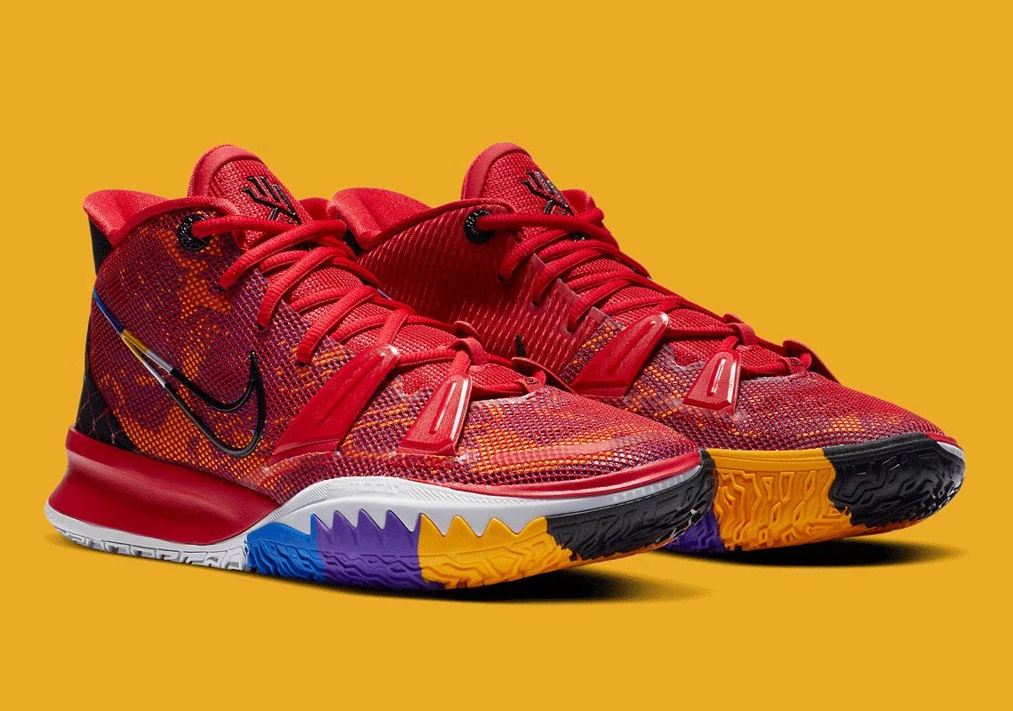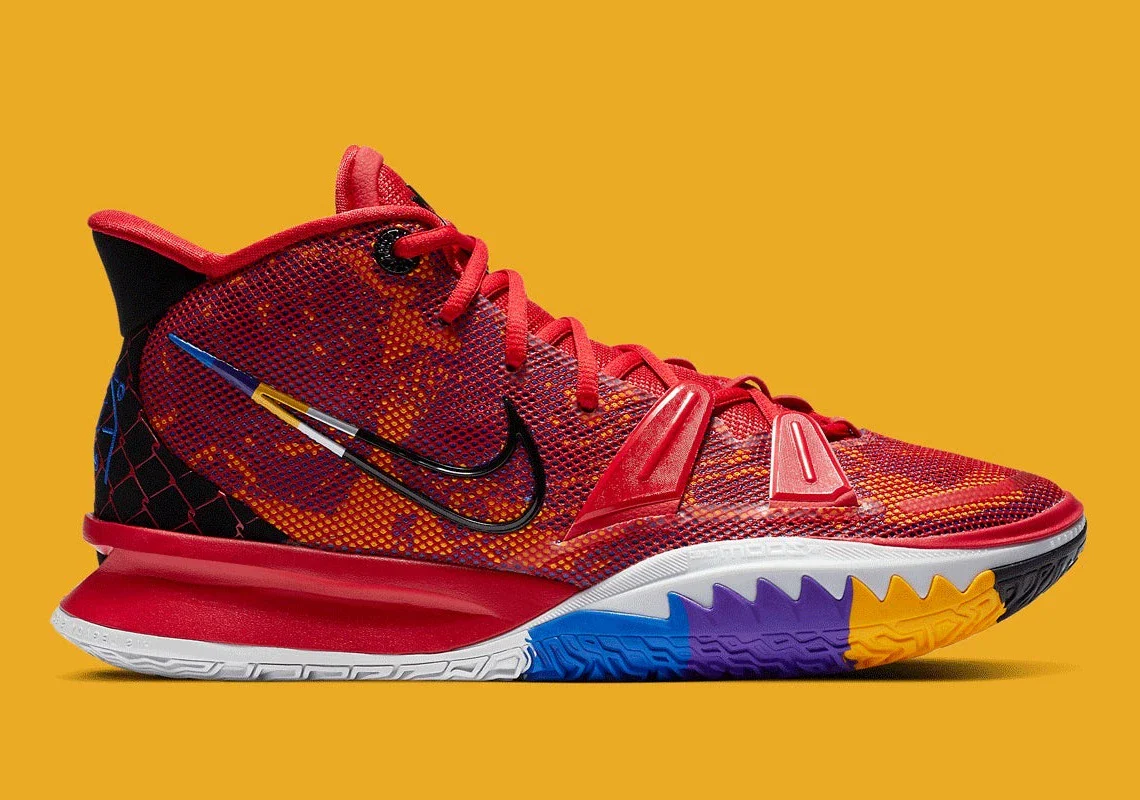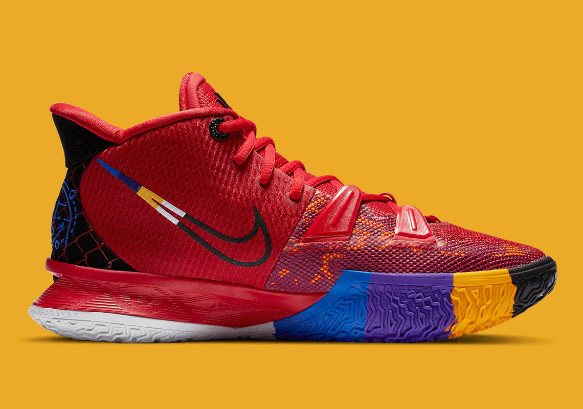 La Nike Kyrie 7 “Icons of Sport” célèbre les grandes figures et influences sportives qui ont façonné la mentalité et le jeu de Kyrie Irving, en rendant hommage à la créativité, à la passion et à la transmission de l’héritage sportif. Ce coloris vibrant traduit à la fois la personnalité expressive du joueur et son amour du détail.