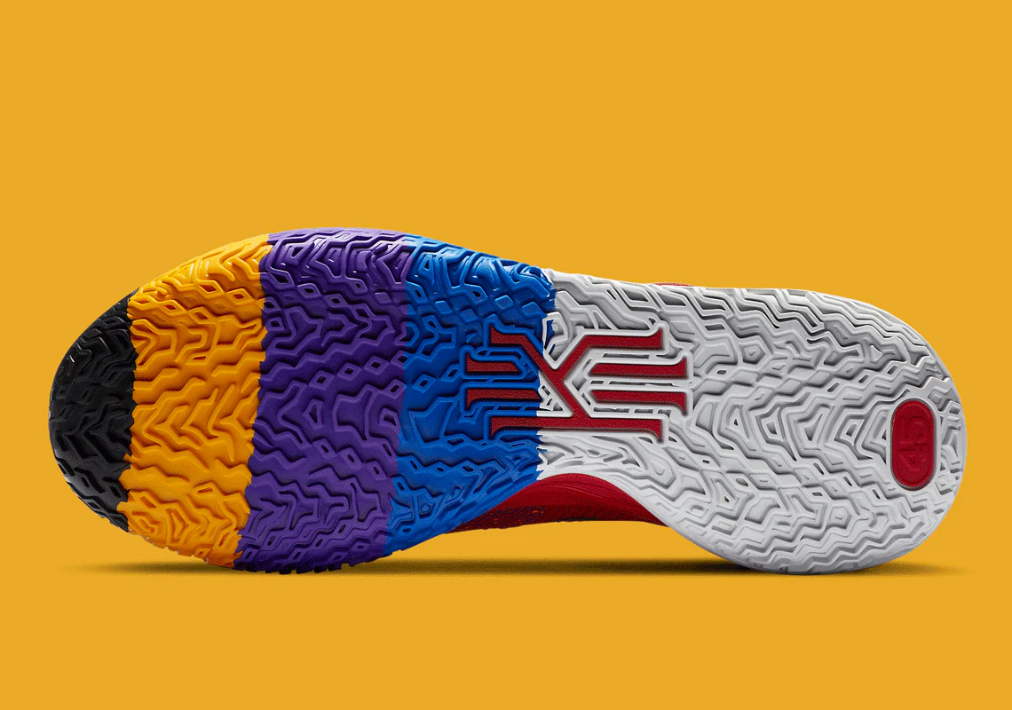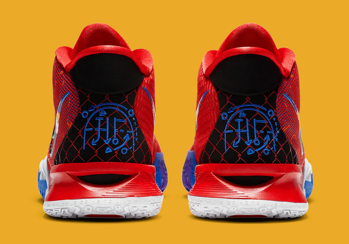 Sa tige en mesh technique blanc cassé est animée par une multitude de motifs colorés et symboles graphiquesreprésentant différentes disciplines et inspirations. Les accents bleu ciel, rouge et or apportent une dimension artistique et culturelle à la silhouette. Le logo “KI” stylisé trône sur la languette, tandis que la semelle intermédiaire sculptéeintègre la technologie Zoom Turbo pour un amorti réactif et multidirectionnel, idéal pour les changements de rythme explosifs typiques du jeu d’Irving.