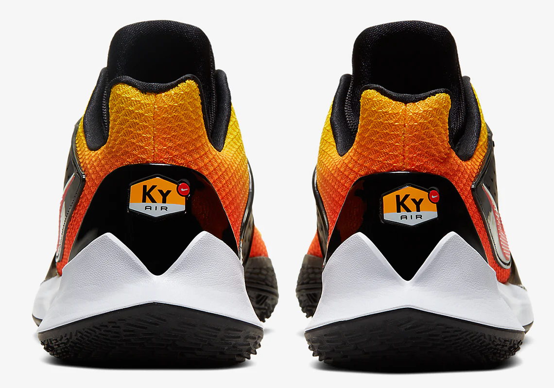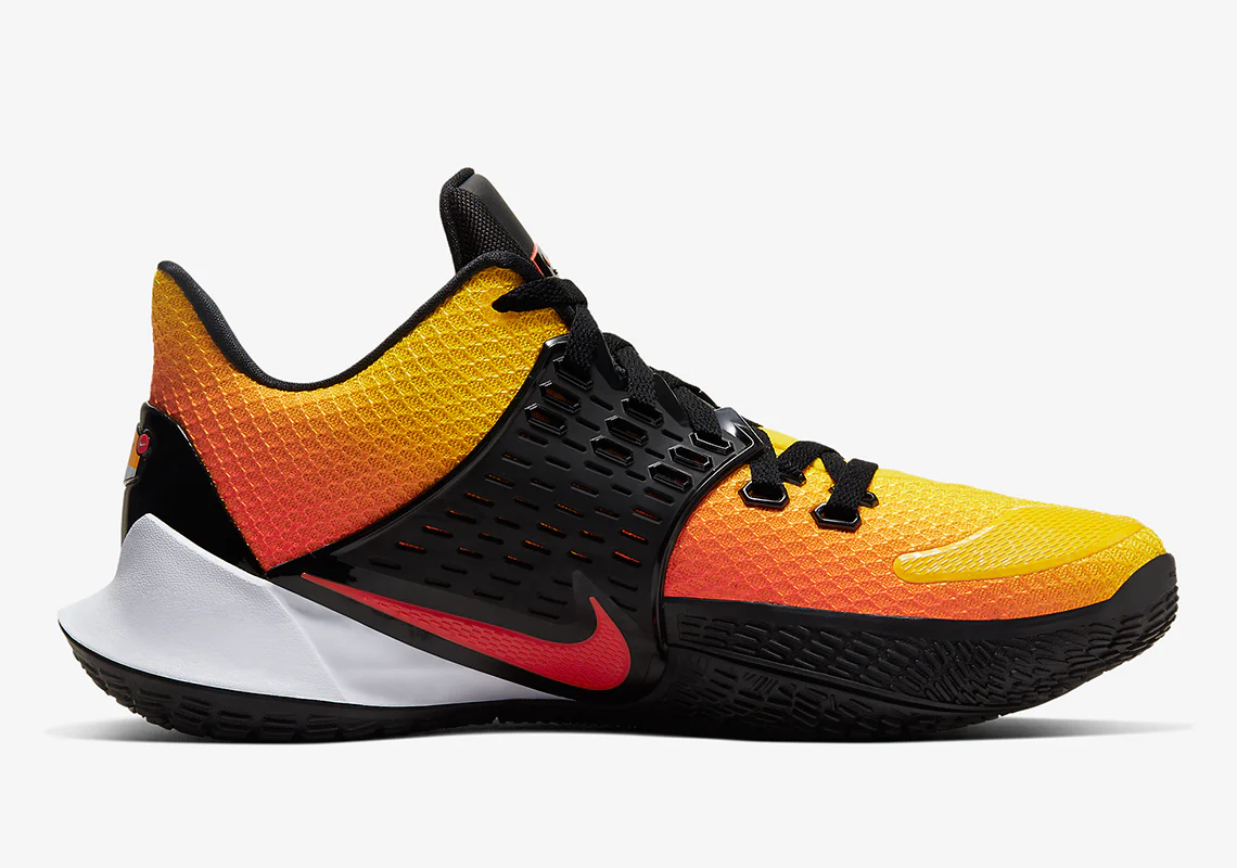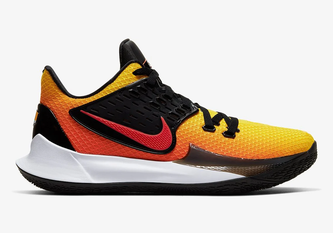 La Kyrie 2 Low « Sunset », qui sera lancé aux pieds de Kyrie Irving lors de la journée médiatique de la NBA 2019 pour les Brooklyn Nets, présente un design distinctif inspiré du coloriage OG Air Max Plus du même nom. La tige en maille de la chaussure est finie en rouge et orange dégradé, accentuée par une cage noire au milieu du pied et un talon moulé orné d’une touche Kyrie sur le logo original de Tuned Air.