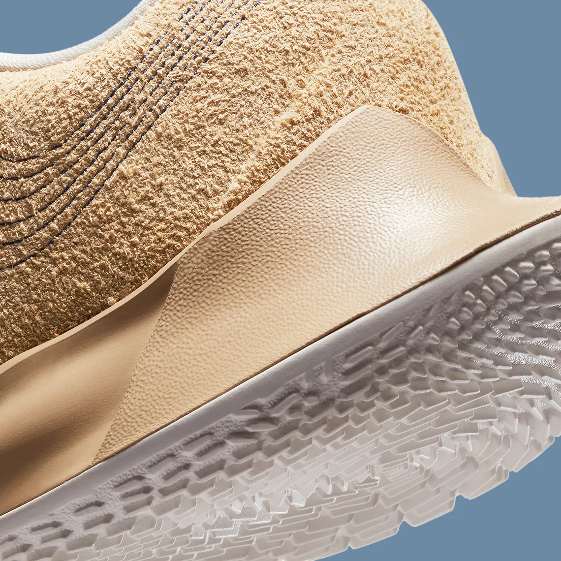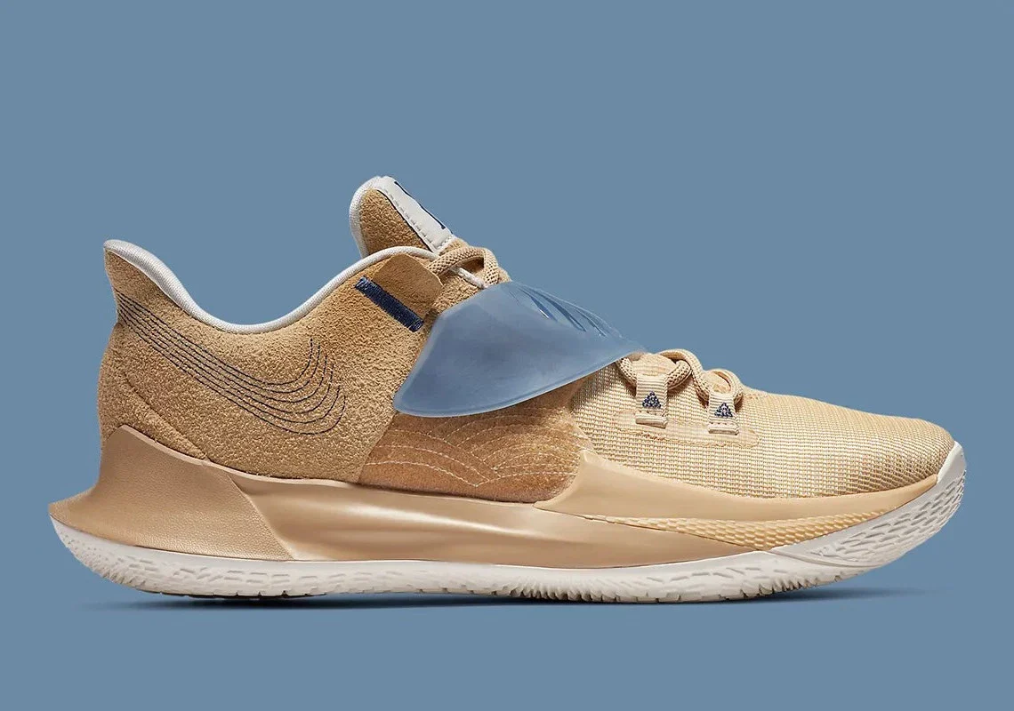 Après avoir appliqué la méthode de couture japonaise au Kyrie S2, la division skate du Swoosh se tourne maintenant vers une autre des dernières silhouettes d’Uncle Drew : la Kyrie Low 3. De style similaire à l’un des membres Blazer Mid de la capsule, la tige de cette itération est enveloppée de une teinte sésame partagée entre des bouts synthétiques et des daims poilus au talon ; ce dernier héberge des Swooshes brodés. En accompagnement, des touches bleu grisâtre touchent les sangles, les languettes et les semelles intérieures du milieu du pied. De plus, si vous jetez un coup d’œil à la marque de la languette du pied droit, ainsi qu’aux graphismes de la semelle intérieure, vous remarquerez que le logo « Nike SB » a été remixé en « Nike BB » pour exprimer son intention de basket-ball.