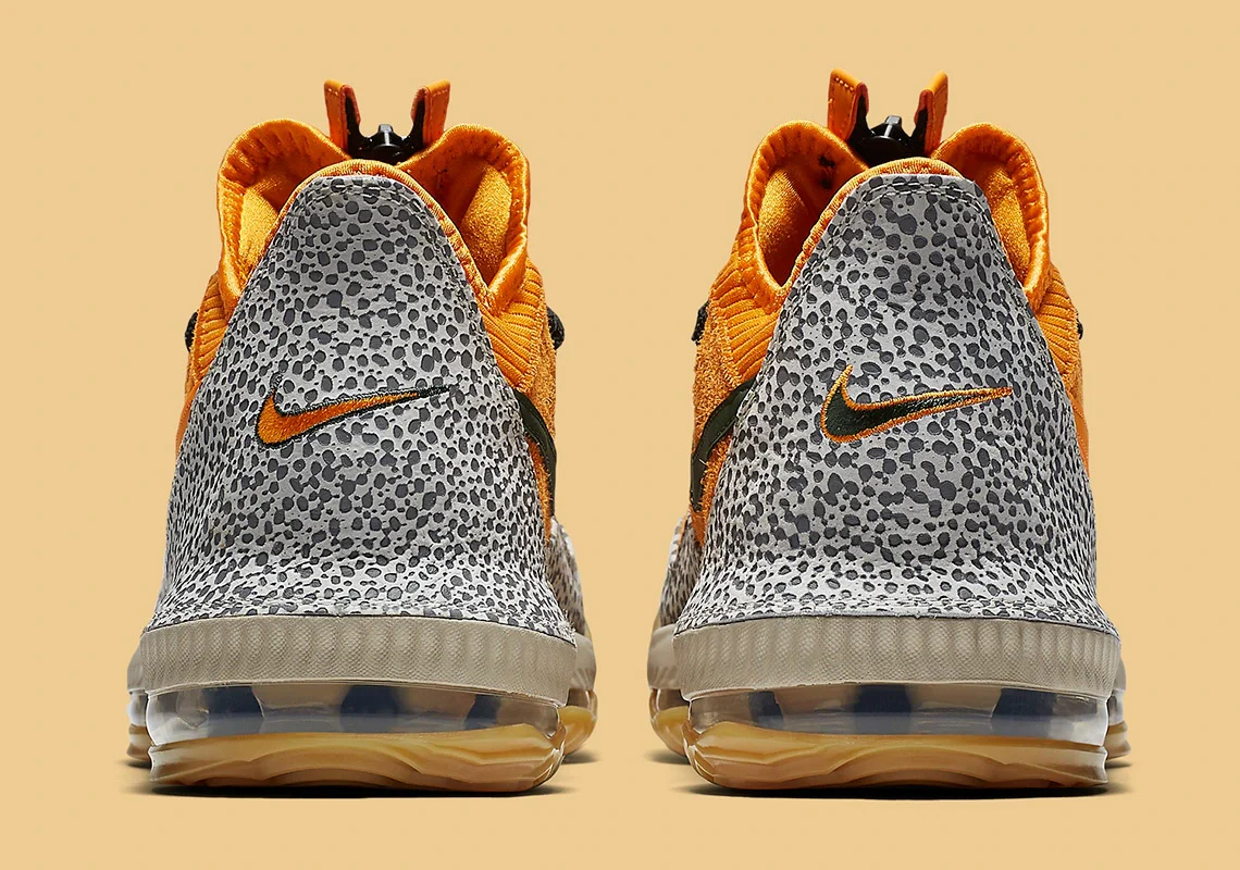Fruit d’une collaboration entre ATMOS et Nike, la chaussure Atmos x LeBron 16 Low « Safari » reprend des éléments de l’OG Air Safari et d’une Air Max 1 2003 sur la 16e chaussure de LeBron James. La tige est construite avec un linceul en tricot côtelé recouvert de nubuck, fini en Kumquat.