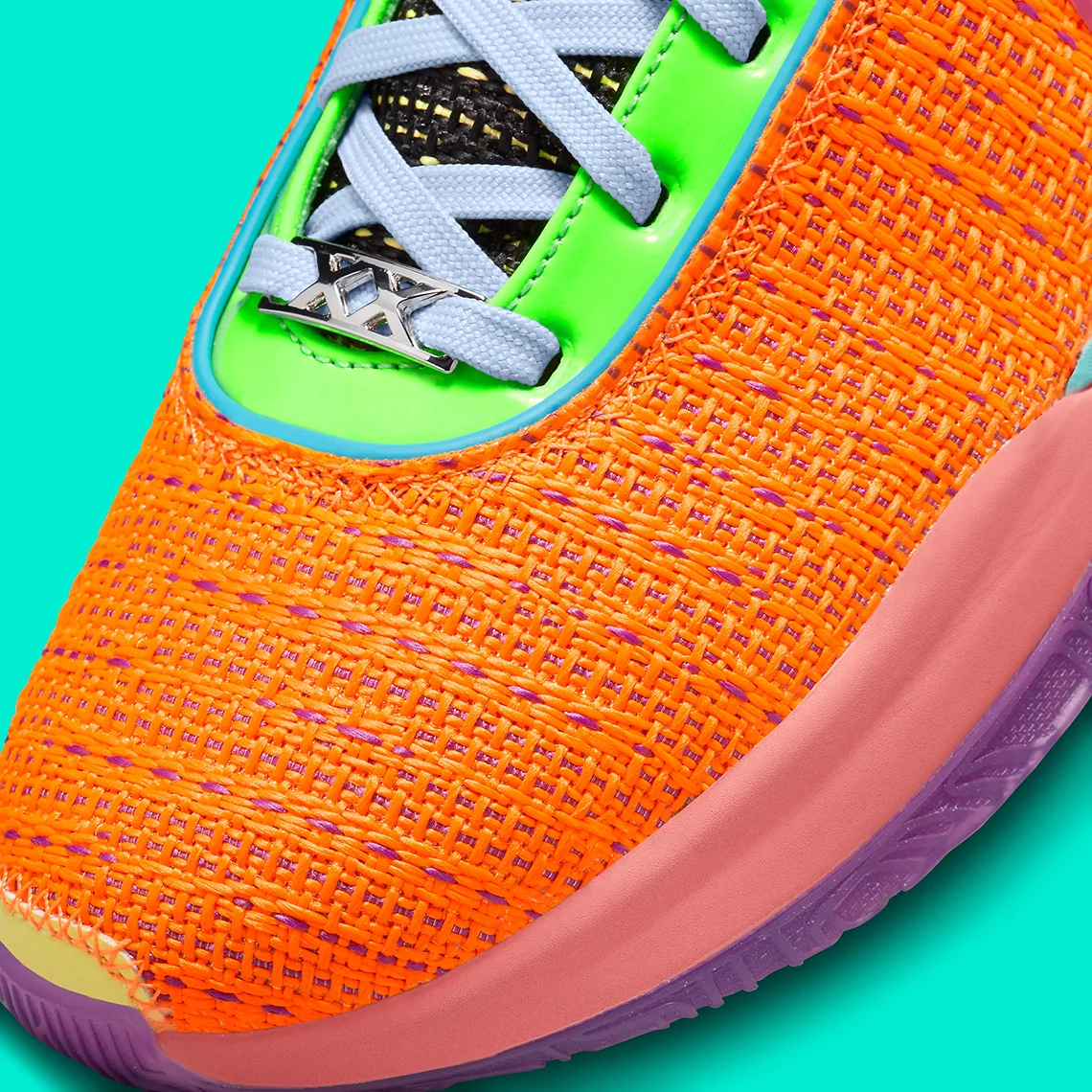 De ses débuts en tant que Cavalier à son premier championnat NBA avec le Miami Heat, la dernière Nike LeBron 20 semble s’inspirer de la vie nocturne trépidante de Miami. Avec une palette de style « What The » à travers une collection turbulente de teintes titrées, les couches de base tissées se livrent à une couche rauque de « Total Orange« , piquée d’une multitude d’accents « Vivid Purple« . Assortie au traitement lavande sur le Swoosh initial, la partie inférieure de la chaussure est accentuée par des coutures de couleur assortie et remplie d’un bleu froid délavé qui s’étend sur les lacets.