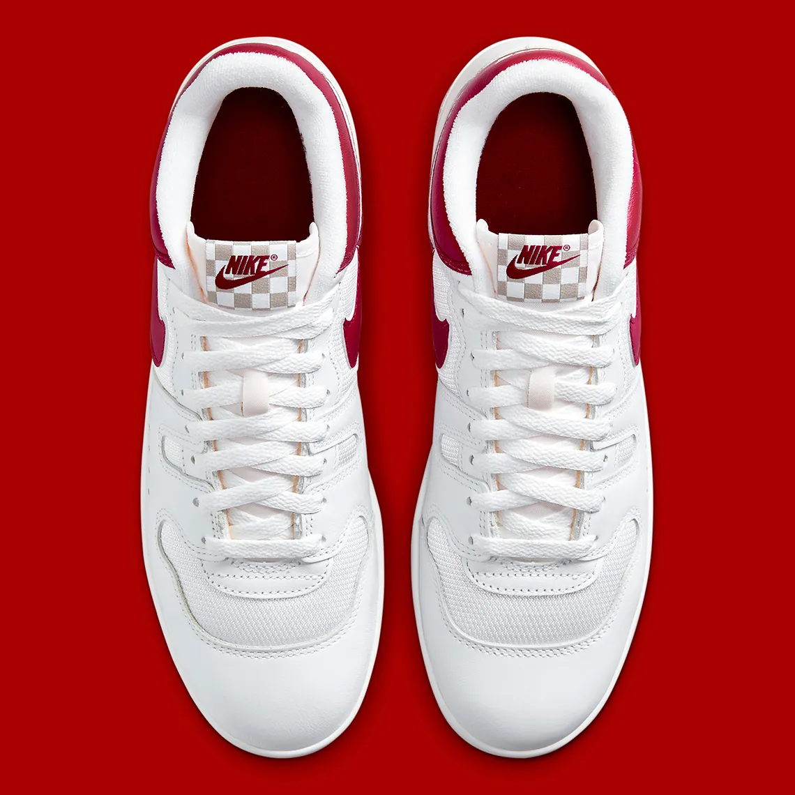 Contrairement aux paires susmentionnées, qui présentaient le motif en damier noir/bleu sur la langue, cette version « Red Crush » introduit un nouveau motif en damier beige/blanc sur la langue. Le reste de la construction de la chaussure reste conforme à la construction fidèle à l’OG, avec les chiffres et les lettres imprimés sur la semelle intérieure.