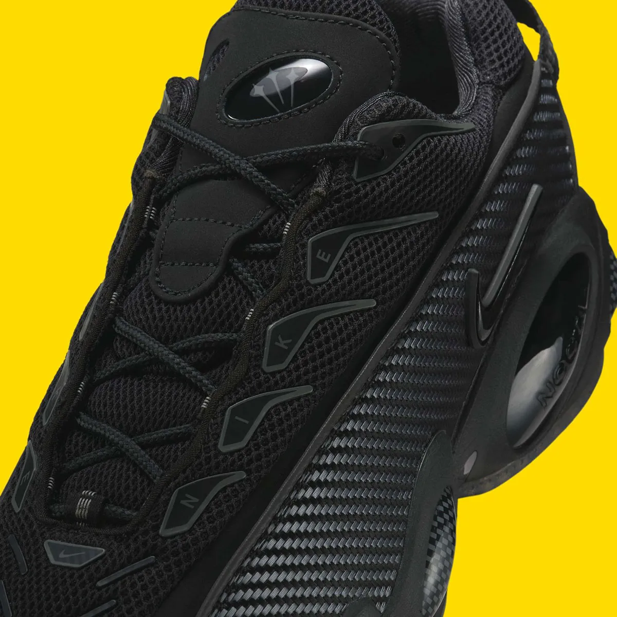 Sa tige en mesh respirant noir, renforcée par des superpositions gris fer, offre un contraste subtil et sophistiqué. Les détails graphiques arrondis de la semelle intermédiaire évoquent directement le design futuriste des années 90, tout en ajoutant une touche contemporaine.