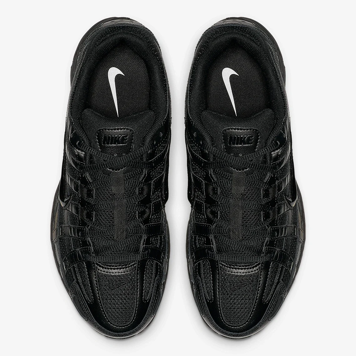 L’empeigne en mesh noir est recouverte de renforts en cuir verticaux et horizontaux assortis pour un look tridimensionnel. La silhouette comporte également plusieurs marques ton sur ton, notamment le Swoosh latéral du quart de panneau, des lacets assortis et une semelle intercalaire Cushlon.