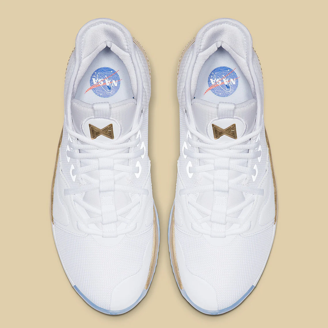 Les « missions Apollo » de la NASA x PG 3 aident à commémorer le 50e anniversaire de l’alunissage d’Apollo 11. La tige en maille légère de la chaussure est renforcée par un recouvrement de l’avant-pied et un collier matelassé, tandis que Zoom Air assure un amorti sous le pied. La semelle intermédiaire elle-même arbore un motif métallique doré qui reprend une citation de Paul Brandt, tandis que les talons portent la marque de la NASA et un drapeau américain. Une semelle extérieure translucide assure la traction.