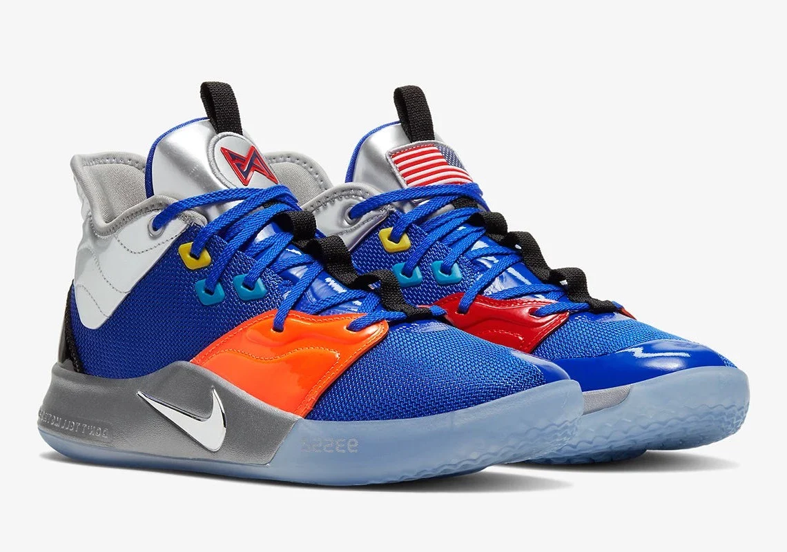 Avec Paul George qui entame sa 10ème saison dans la ligue et qui est maintenant associé à une équipe de spécialistes défensifs au sein des LA Clippers, le décor est planté pour que le petit attaquant hautement qualifié nous offre cette année quelques moments forts dignes du Top 10 d’ESPN. Et grâce aux efforts continus de collaboration entre Nike et la NASA, l’éternel All-Star sera encore mieux préparé au décollage avec la quatrième offre de la gamme PG3 NASA prête à sortir ce mois-ci. Les thèmes astronomiques standard sont toujours mis en jeu via un mélange d’argent métallique et de tons orange, mais des accents colorés appropriés de bleu royal et de rouge sont également ajoutés dans le mélange, faisant également un clin d’œil à la nation Clipper ainsi qu’au patch officiel d’Apollo 14.