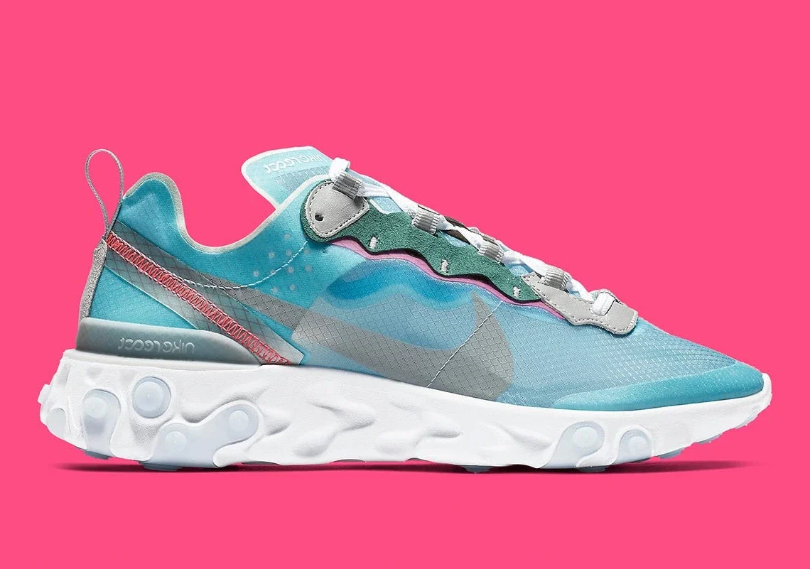 La Nike React Element 87 « Royal Tint » est un autre excellent look pour la baskets ultra confortable et élégante de Nike Sportswear. Le modèle que de nombreux acteurs de l’industrie considèrent comme la meilleure première basket de 2018 a continué sur sa lancée au début de 2019 avec cette couleur qui se caractérise par une teinte bleu vif pour sa tige translucide. Cette teinte apaisante est parfaitement complétée par des tons sarcelle, gris et rose sur la tige, ainsi que par une semelle en mousse blanche React pour une ambiance rafraîchissante et tropicale. La Nike React Element 87 « Royal Tint » est sortie en février 2019.