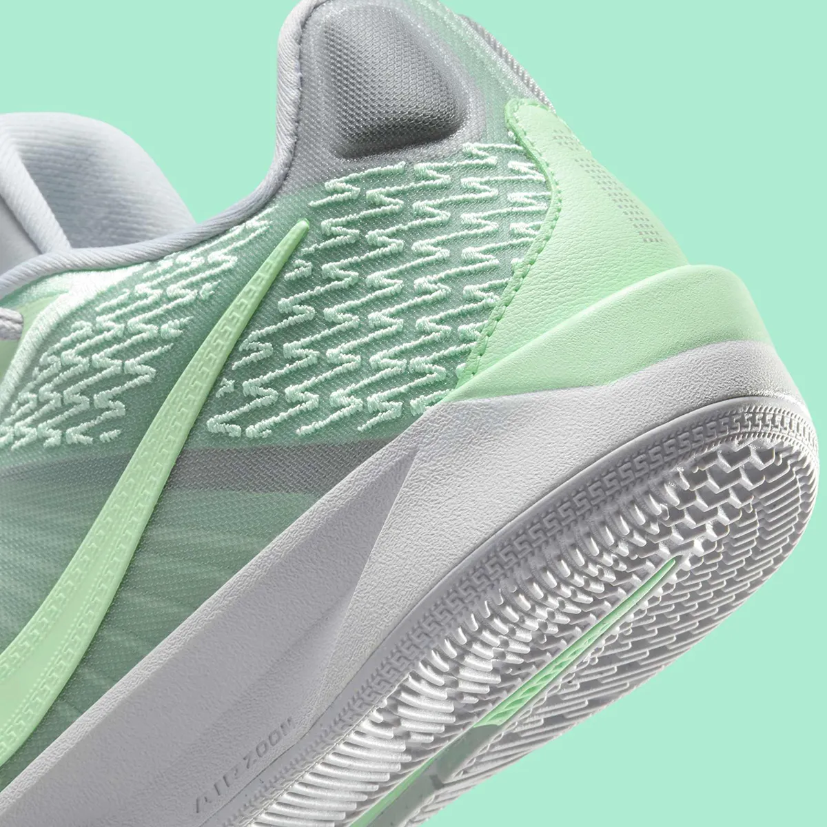 Après avoir été incluse dans la collection « Black Label » de Nike Basketball pour le All-Star Weekend, la Sabrina 2 reprend son cours normal avec un GR frais qui complète parfaitement les uniformes de la New York Liberty. Les couleurs claires « Fresh Mint » et « Vapor Green » enveloppent les côtés, notamment l’avant-pied, le Swoosh et les câbles Flywire, tandis que le reste de l’empeigne et la semelle intermédiaire sont équilibrés en « Light Smoke Grey ».