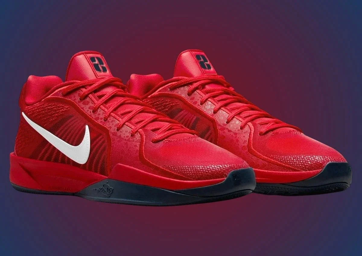 La Sabrina 2 est dotée d’une tige entièrement rouge, mais en y regardant de plus près, le motif safari omniprésent est légèrement superposé sur le col du lacet. Le rouge patriotique persiste sur toute la tige, ornant la texture brodée au niveau du talon, l’intérieur en peluche et la semelle intermédiaire qui abrite la mousse Zoom et Cushlon 3.0 à l’avant-pied. Le tout est recouvert d’une couleur obsidienne foncée, tandis que le blanc colore le Swoosh et l’iconographie de Sabrina qui l’entoure.