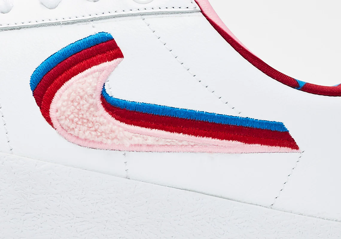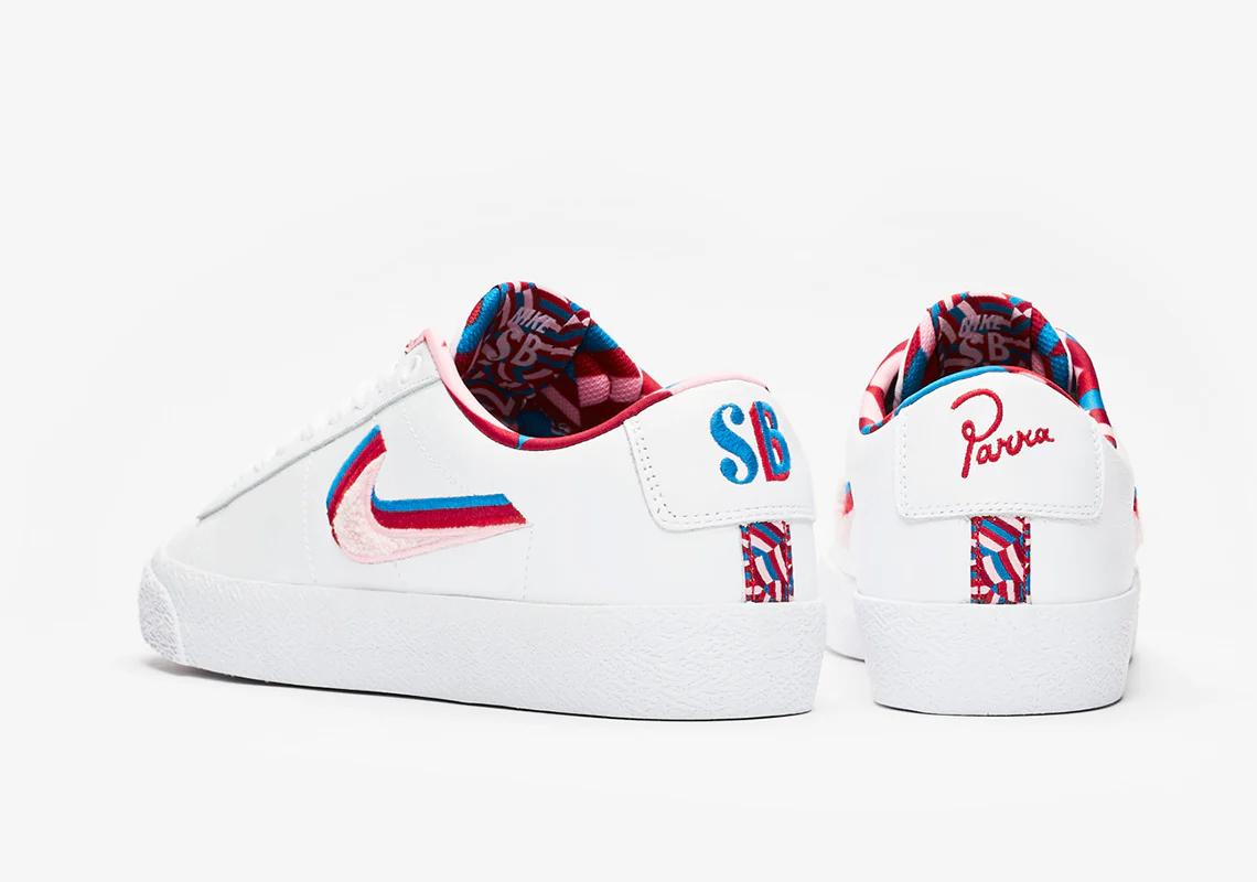 La Blazer GT de Parra x Nike SB est la moitié de la collaboration de 2019 entre le célèbre artiste néerlandais et Nike SB. La version premium du Blazer Low GT de Parra est présentée aux côtés d’un Dunk Low assorti, avec une tige en cuir blanc et un quadruple graphique Swoosh coloré brodé d’une couche supérieure rose en chenille.