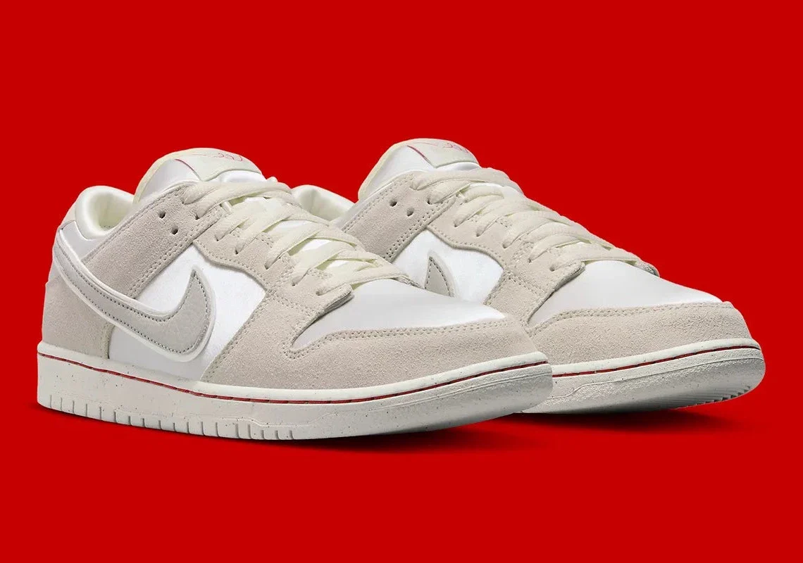 Pour les non-initiés, la ficelle rouge du destin est la croyance selon laquelle le petit doigt de chacun est relié à un fil invisible, qui vous mènera inévitablement à la personne qui vous est destinée. Profondément ancré dans la culture de l’Asie de l’Est, ce mythe semble avoir touché la corde sensible de la Swoosh, qui lui rend hommage avec la Dunk Low « Valentine’s Day », récemment dévoilée. Bien que la chaussure soit sobre dans sa forme (presque entièrement composée de couleurs neutres), la paire visualise la légende sur sa semelle intérieure, représentant deux mains reliées par un cordon imperceptible. De plus, ce dernier s’enroule autour du Swoosh de l’étiquette de la languette adjacente.
