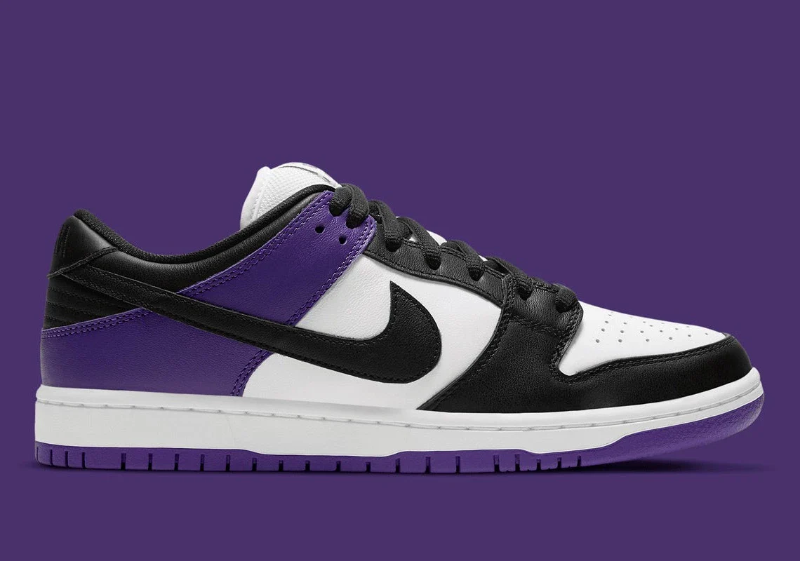 La Nike SB Dunk Low « Court Purple » est une chaussure de skate dont le coloris est inspiré d’une Air Jordan 1 du même nom. La Nike SB a sorti la « Court Purple » dans le cadre de sa collection printemps 2021. Ce modèle est l’un des nombreux SB Dunks qui ont fait référence aux couleurs populaires d’Air Jordan 1 au fil des ans, rejoignant le « J-Pack » et le « Space Jam », entre autres, pour faire le saut du Jordan au SB Dunk. Les détails comprennent des couches de cuir noir beurre sur l’avant du pied, des oeillets, un collier et un talon qui contrastent avec la base en cuir blanc.