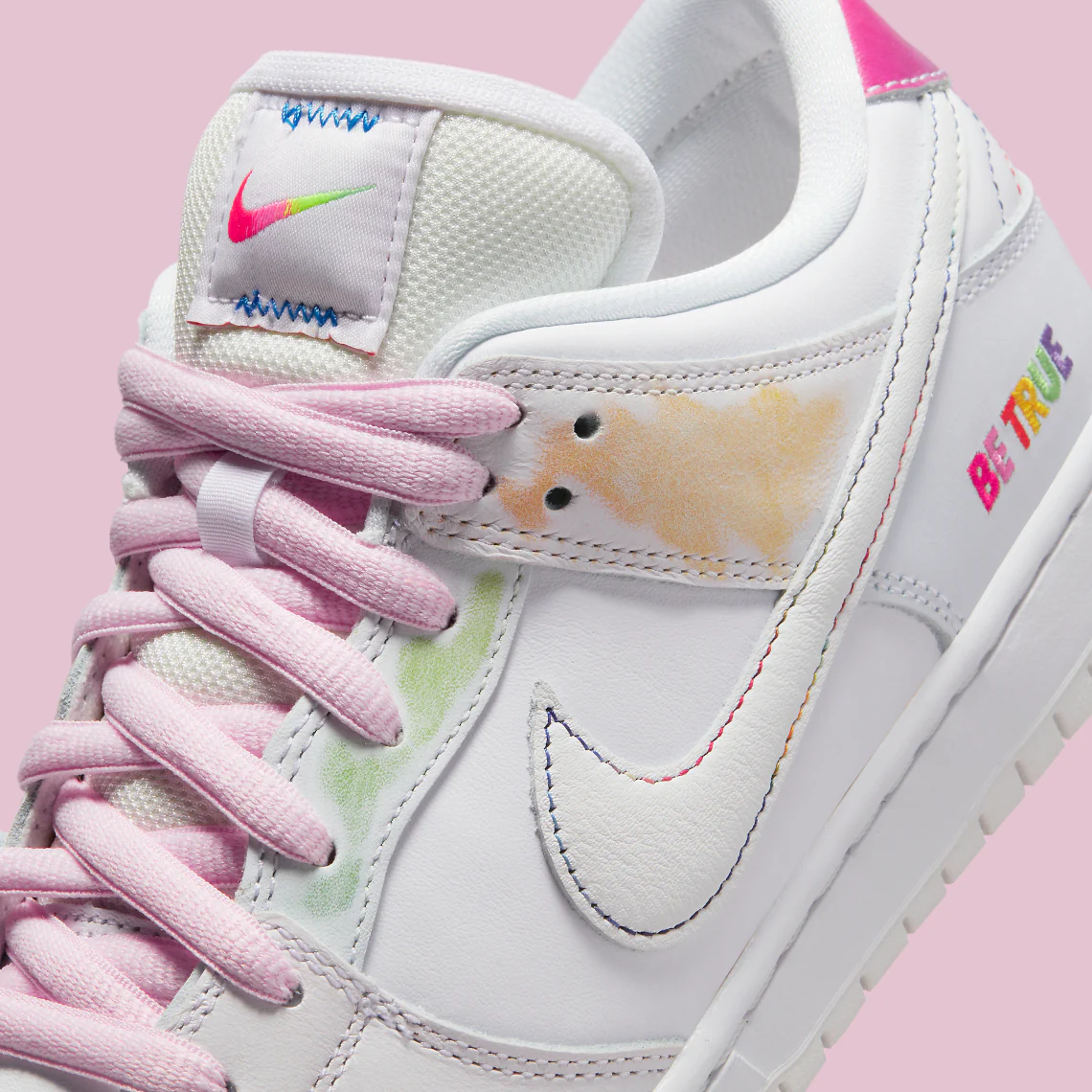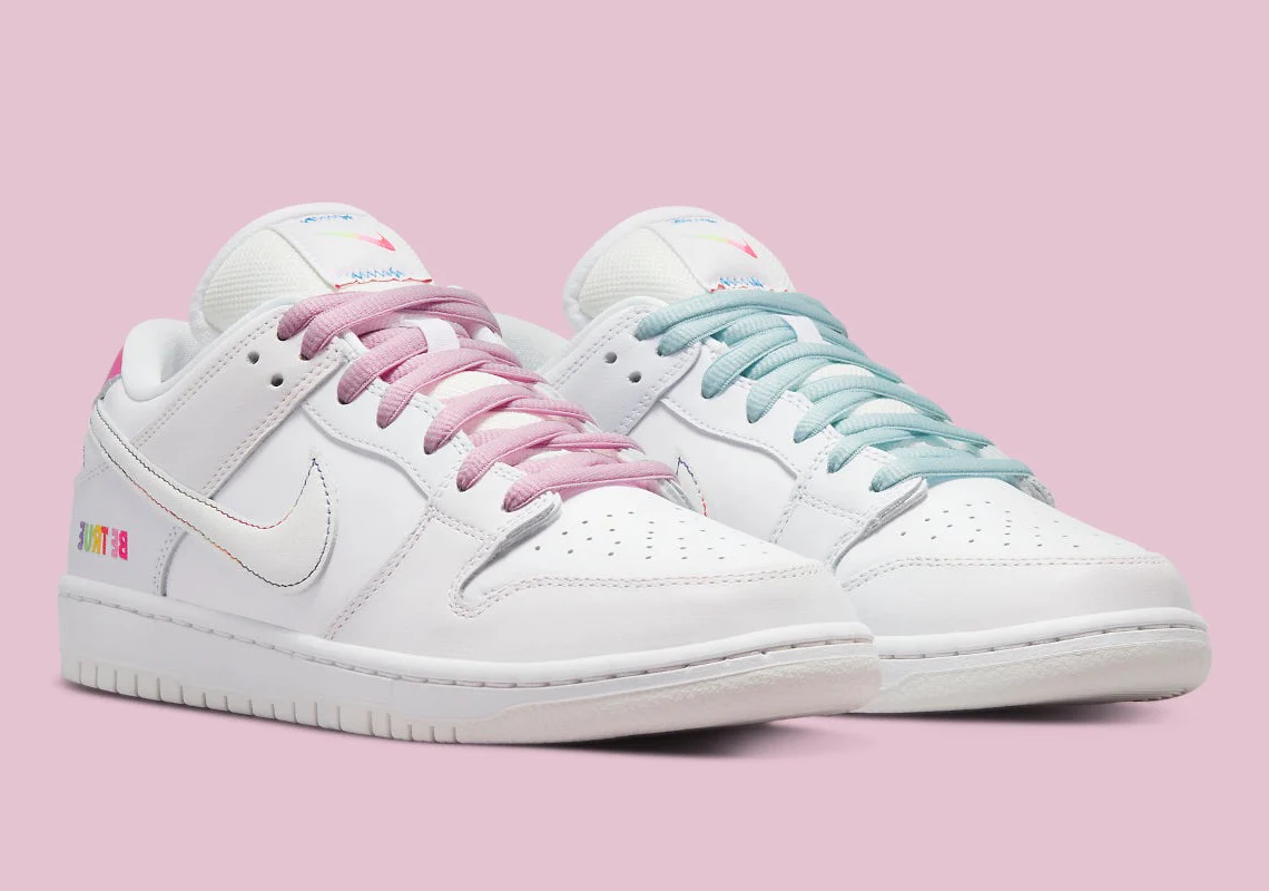 Au cours des dernières années, la série « Be True » de la société a montré l’engagement de la société basée dans l’Oregon envers l’expression sexuelle et de genre, en équipant une poignée de modèles Nike Sportswear et de performance dans des couleurs et avec des détails inspirés par la communauté LGBTQIA+. Au premier coup d’œil, la dernière proposition de Nike SB est relativement discrète, la majorité de la tige et de la semelle étant de couleur blanche. Cependant, des photos de produits récemment dévoilées révèlent que les chaussures aux accents multicolores sont dotées d’un fini résistant à l’usure, révélant un mélange de teintes sous la couche de peinture supérieure. Le message « BE TRUE » arrive sur le talon latéral et la doublure de la chaussette, avec des logos inspirés de l’arc-en-ciel éparpillés dans la Nike Dunk qui porte une pochette derrière la langue.