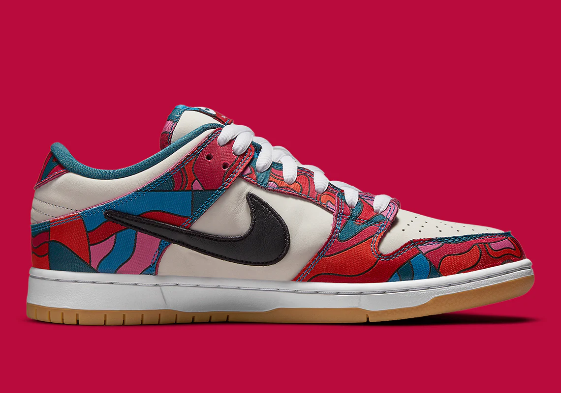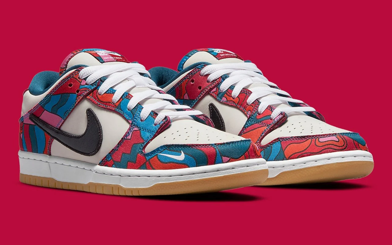 Le nom de Parra est bien connu dans la communauté des baskets, l’artiste basé à Amsterdam responsable de certaines des collaborations Swoosh les plus excitantes de tous les temps. Et en commémoration des Jeux olympiques de Tokyo (ainsi que de la première apparition du skateboard sur la scène mondiale) NikeSB a encore une fois fait appel à son talent pour une série d’uniformes et une Dunk Low très spécial.