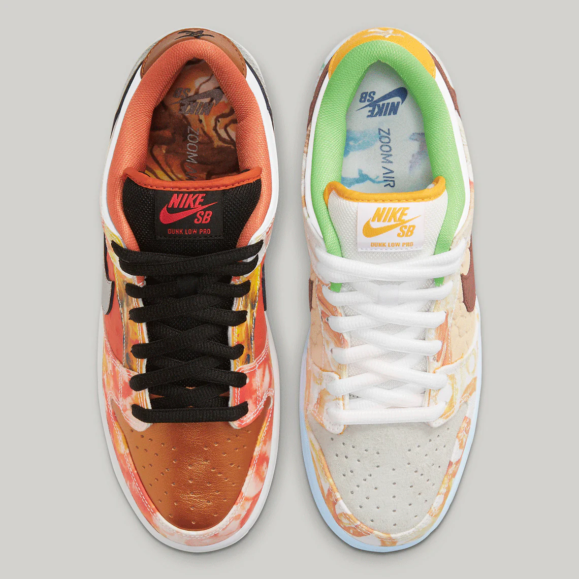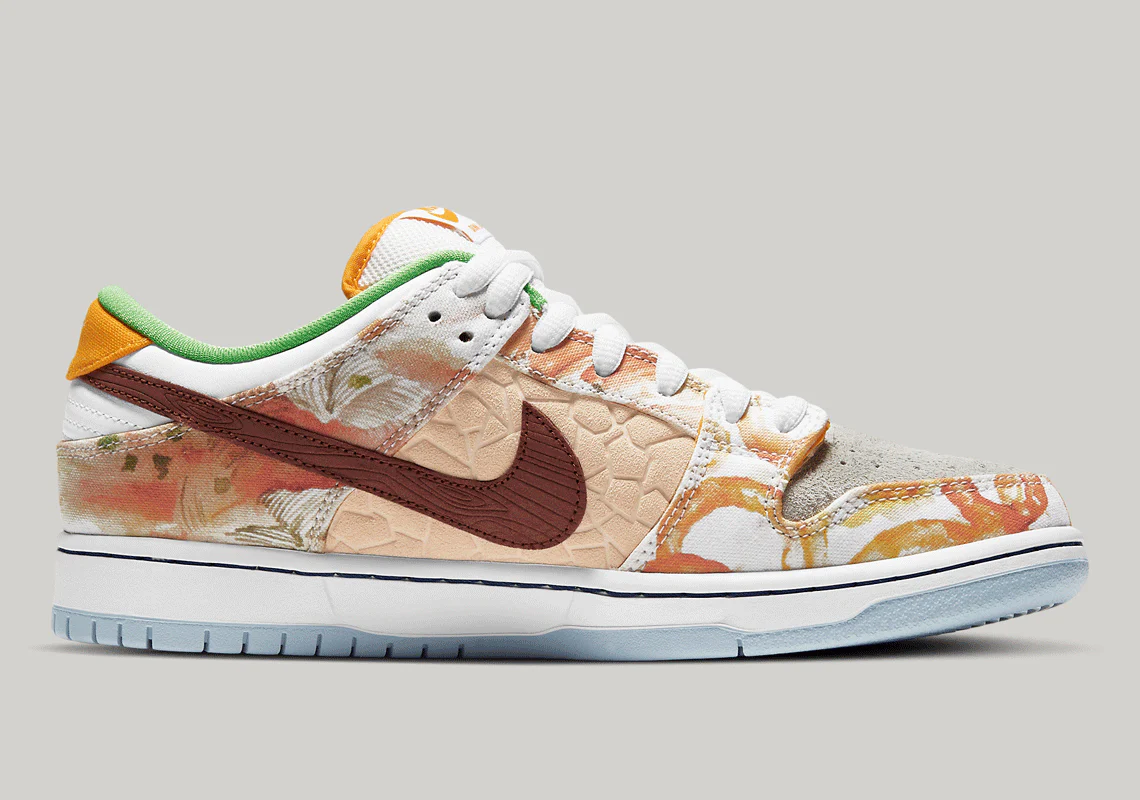 La Nike SB Dunk Low Pro « Street Hawker » est une version de janvier 2021 de la ligne de skateboard de Nike conçue par l’artiste Jason Deng. Le « Street Hawker » représente le lien entre les cultures à travers le paysage tentaculaire de la Chine. La nourriture, en particulier, joue un rôle important dans l’inspiration du processus créatif derrière le « Street Hawker ». Six plats régionaux sont mentionnés dans les aquarelles de la chaussure droite et de la chaussure gauche.