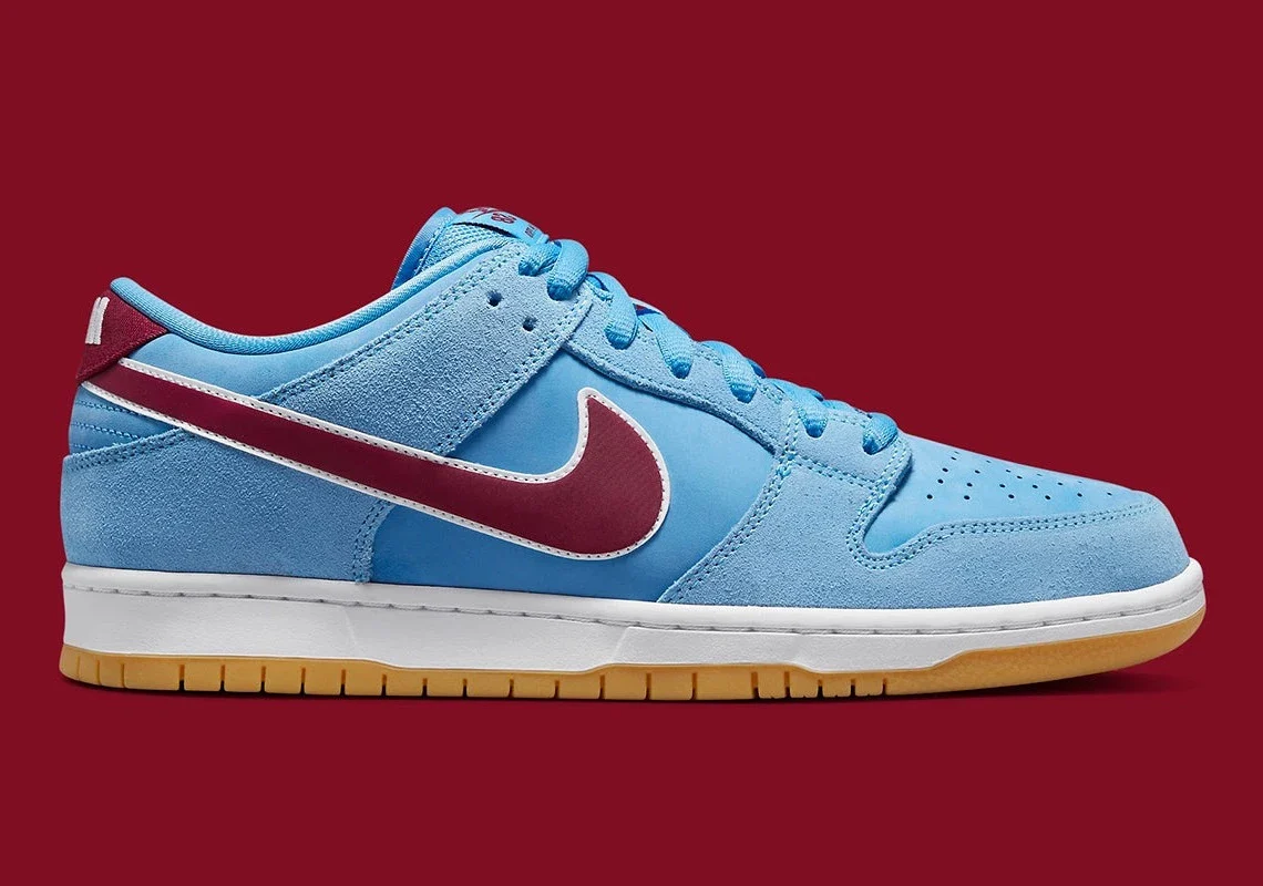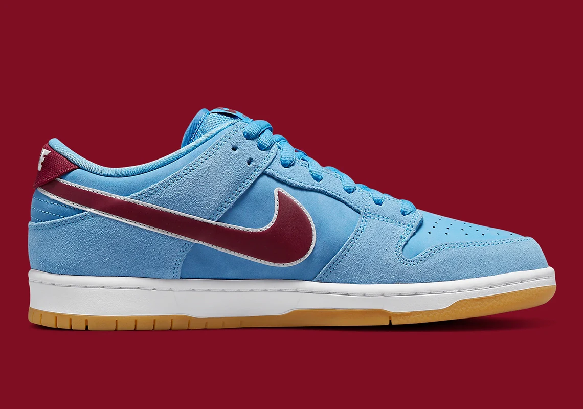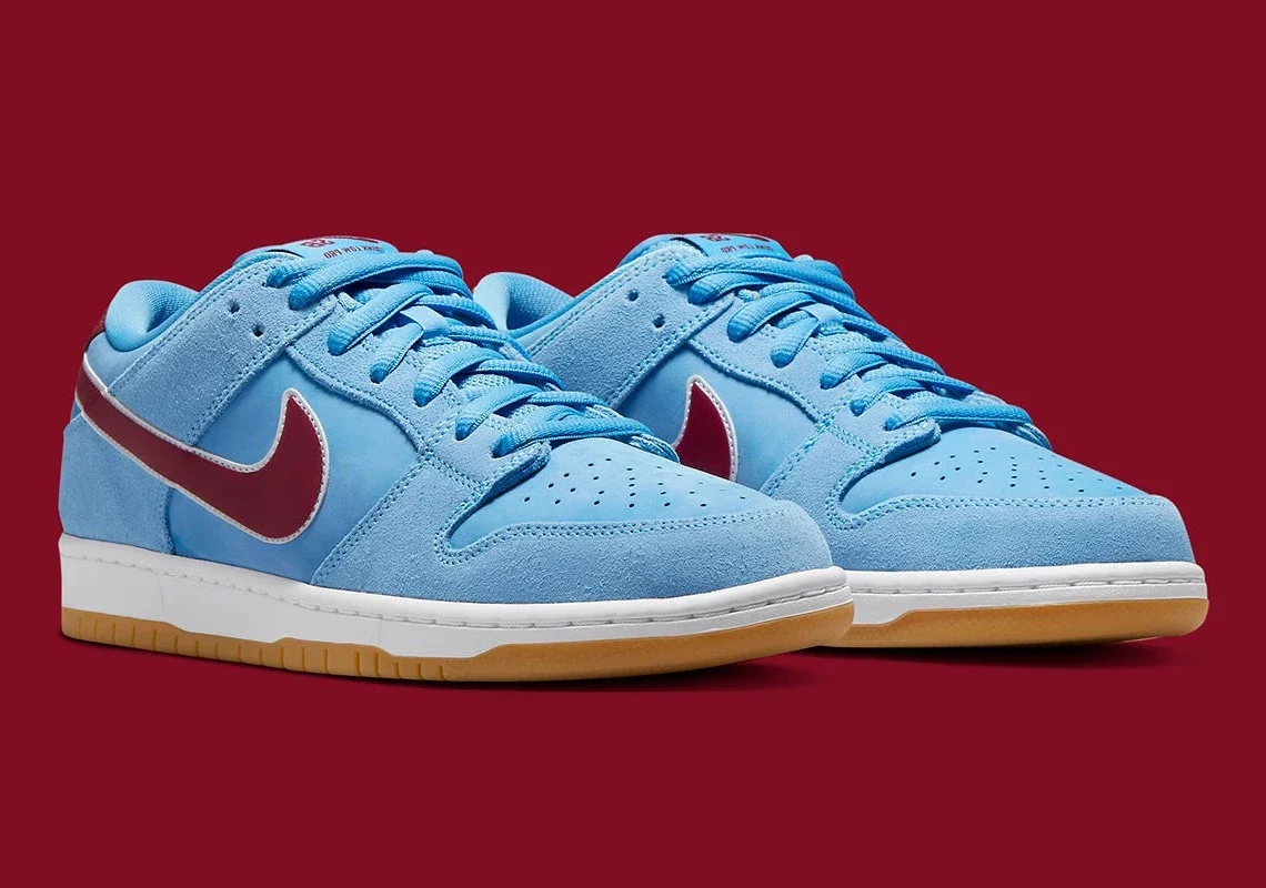 Nike SB semble avoir un pack spécial MLB de Dunks en préparation pour 2022, et bien que seulement deux couleurs aient été révélées, il semble y avoir un accent sur les rivalités. Comme vous le savez, leurs rivaux de l’Est de la Ligue nationale de football (NL) auront leur propre modèle via la SB Dunk High Mets, mais ils seront jumelés avec cette SB Dunk Low inspirée par les Phillies de Philadelphie et leurs magnifiques couleurs de retour. L’empeigne est entièrement recouverte du bleu poudre que les Phillies ont porté de 1973 à 1988, avec des touches de marron sur le Swoosh, le talon et le logo de la languette.