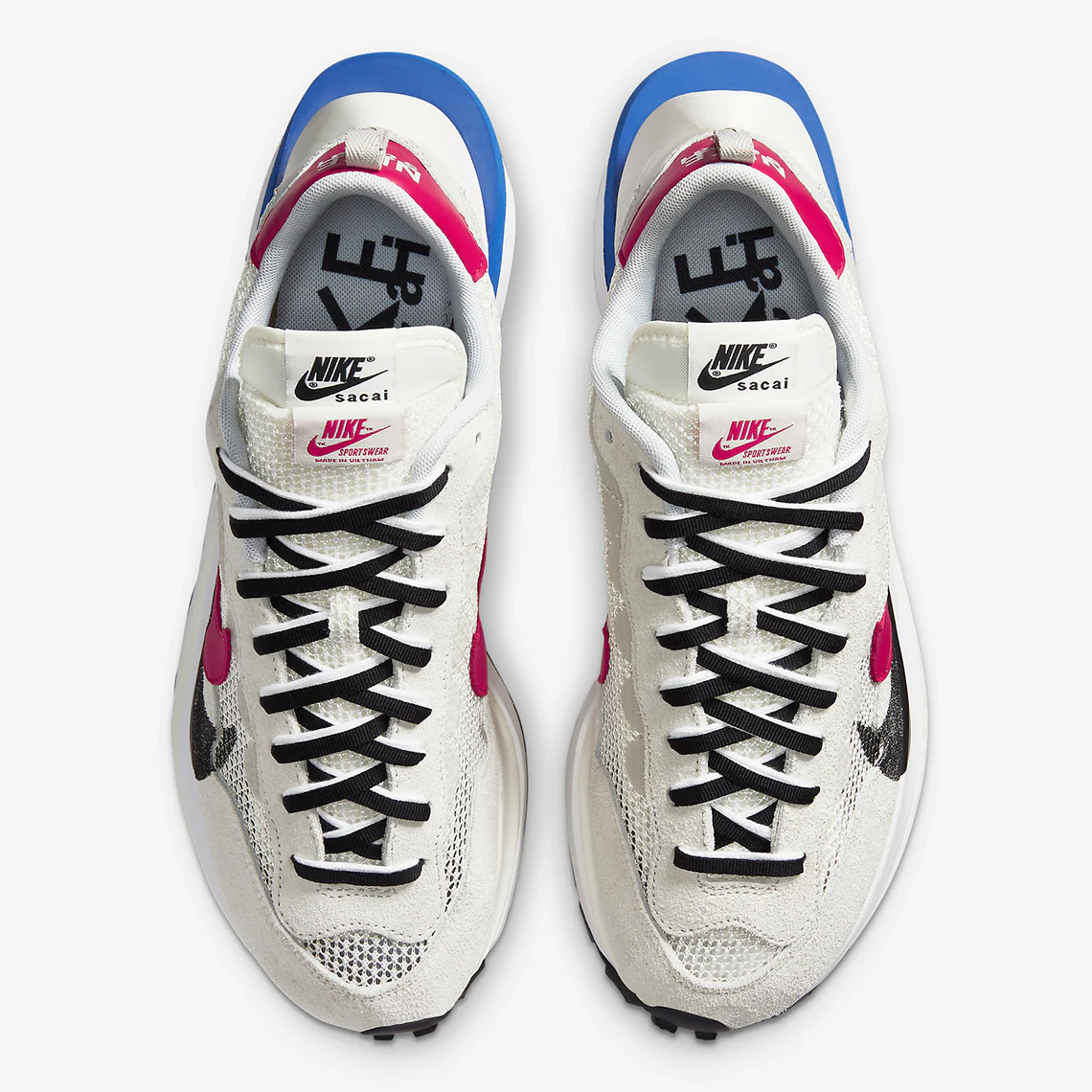 Icône moderne des collaborations Nike, la Nike VaporWaffle sacai Sport Fuchsia Game Royal s’impose comme une pièce collector recherchée par les passionnés de mode et de sneakers.