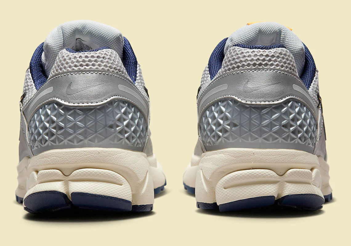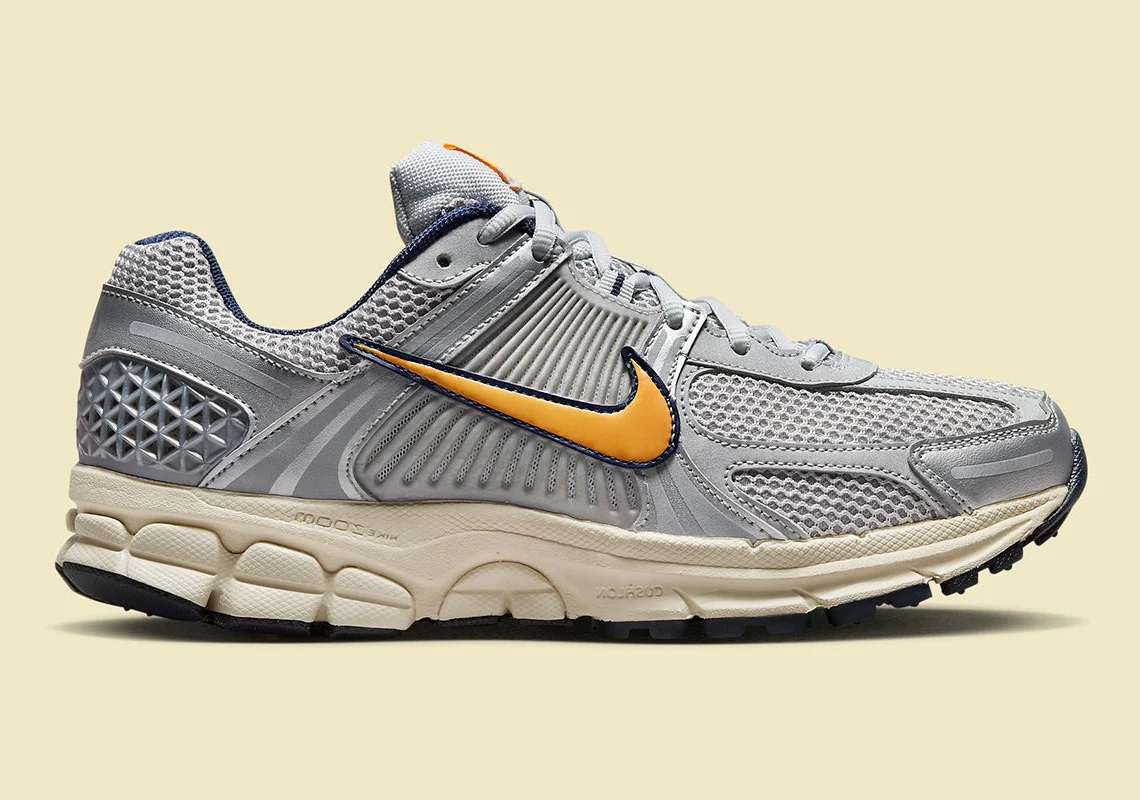 La Nike Zoom Vomero 5 “Pure Platinum / Laser Orange” réinterprète une icône running des années 2010 dans une version premium et urbaine. Sa tige en mesh gris clair “Pure Platinum”, renforcée par des superpositions en cuir synthétique ton argent/synthétique, est accentuée par un Swoosh textile “Laser Orange” vif et contrastant.