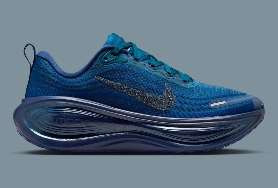 La Nike Vomero Plus Swarovski Blue Force réinterprète l’une des silhouettes running les plus confortables de la marque en véritable pièce d’exception. Le coloris Blue Force, un bleu profond aux nuances métalliques, enveloppe une empeigne en mesh technique qui mêle respirabilité et finesse visuelle. Des renforts dynamiques sculptent la ligne du modèle, tandis que les cristaux Swarovski appliqués avec une précision remarquable viennent illuminer le Swoosh et certains panneaux, transformant cette sneaker performante en objet luxueux. Sous le pied, la semelle amortissante offre le rebond fluide qui a fait la réputation de la Vomero, enrichie d’une sensation de maintien enveloppant et d’un déroulé de foulée particulièrement harmonieux. Cette version cristallisée incarne l’équilibre parfait entre confort haute performance, esthétique futuriste et sophistication scintillante, conférant à la silhouette une allure exclusive pensée autant pour le quotidien que pour les instants d’exception.