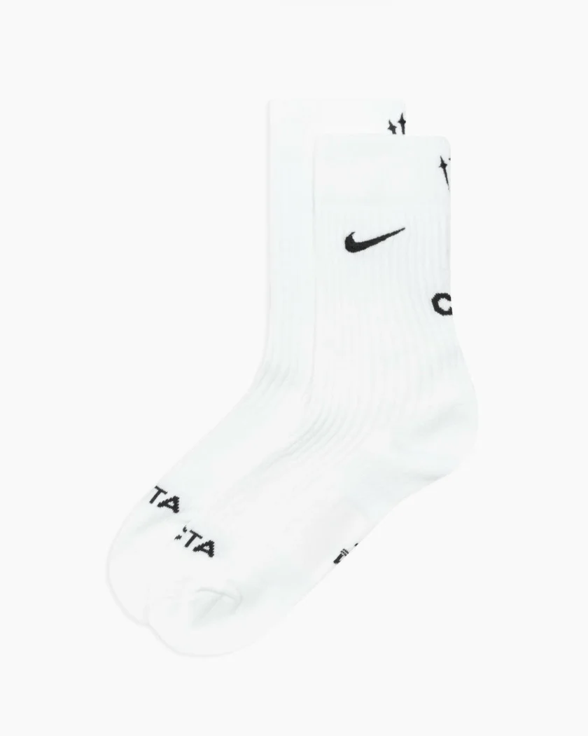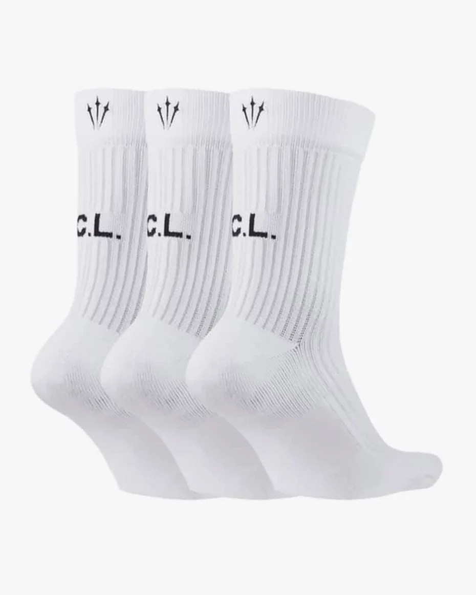 NOCTA est une collection de la tête aux pieds de Nike et Drake inspirée par les uniformes dérivés des vêtements de sport des villes du monde entier. Elle est définie par deux couleurs ( le blanc et le noir ) et les deux sont combinées sur ces chaussettes. Elles sont fabriquées à partir d’un mélange de nylon confortable, parfait pour les rues et les terrains d’entraînement, et sont finies avec le marquage de la collection.
