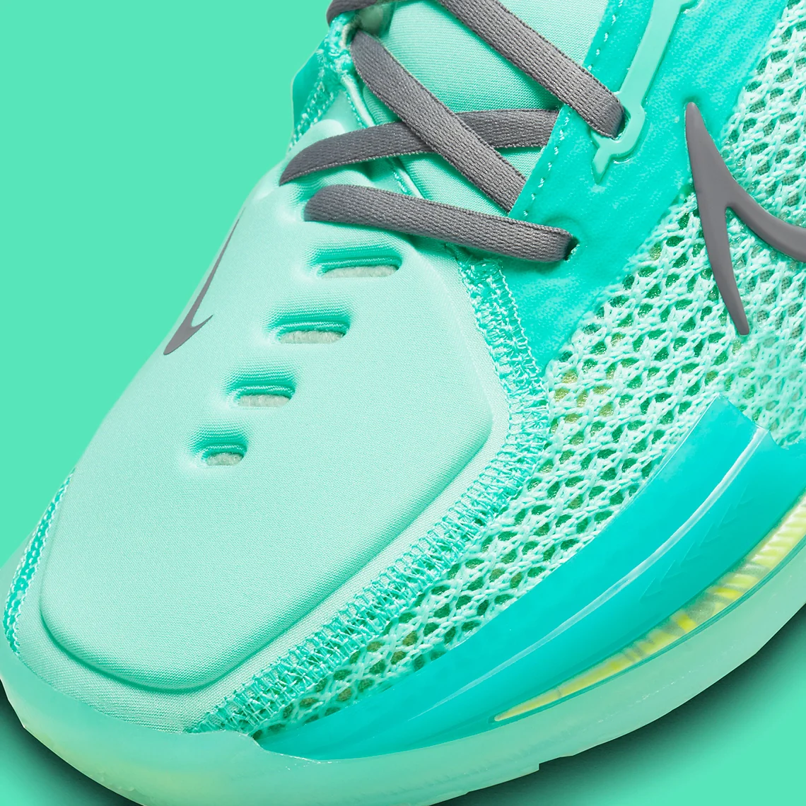 Cette nouvelle version de la GT Cut est un clin d’œil à l’allégeance de Ionescu au New York Liberty, l’équipe de la WNBA qui l’a sélectionnée en premier lors de la draft 2020 de la WNBA. La couleur verte est un lien direct avec les uniformes du Liberty, qui sont évidemment inspirés par la Statue de la Liberté qui se trouve sur Ellis Island à la pointe sud de Manhattan. Des touches de vert néon sont marbrées sur la semelle intermédiaire, tandis qu’un accent gris foncé habille le Swoosh, les lacets, la doublure intérieure et le talon.