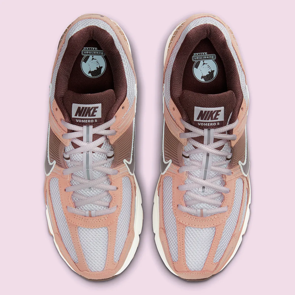 La Nike Zoom Vomero 5 Dusted Clay revisite à merveille la silhouette emblématique issue du running Nike en y insufflant une palette aux tons naturels et sophistiqués. Sa tige en mesh respirant est élégamment accompagnée d’empiècements daim et synthétiques dans des nuances « Dusted Clay » (terre cuite clair/brun sable) et des touches « Platinum Violet / Smokey Mauve/Earth » qui apportent profondeur et raffinement.