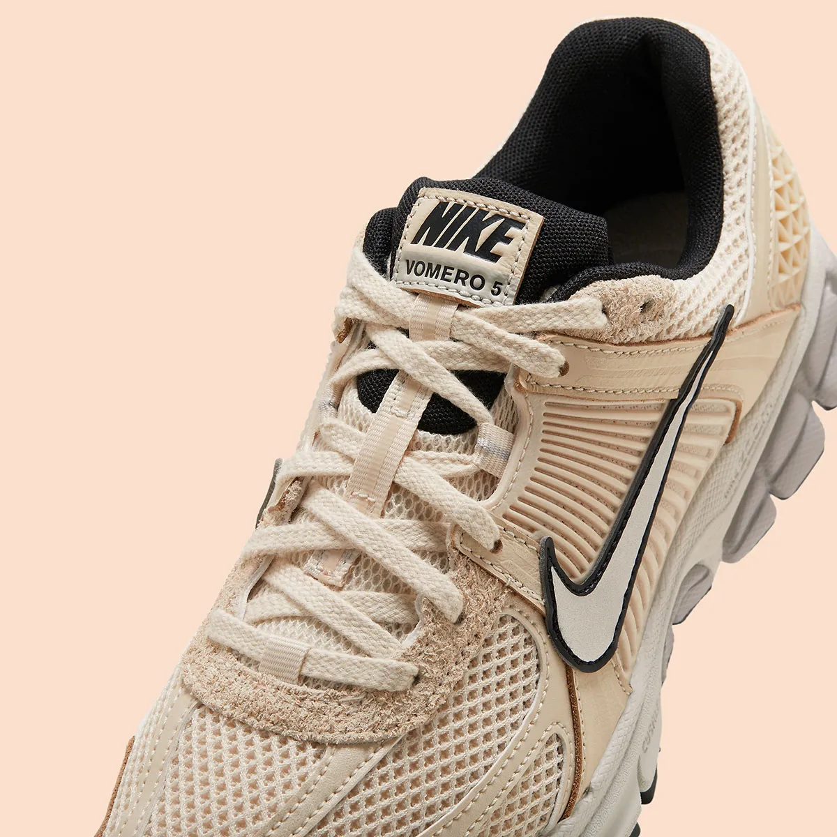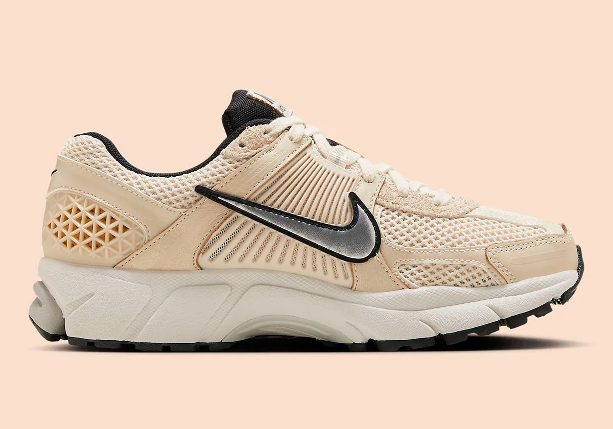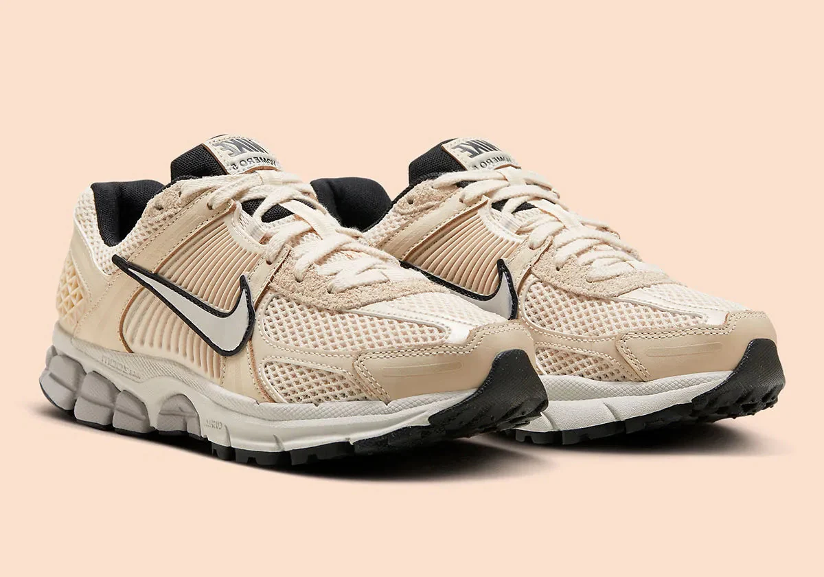 La Nike Zoom Vomero 5 “Pearl White” incarne le parfait équilibre entre une silhouette running héritage et une esthétique lifestyle raffinée. Sa tige en mesh écru “Pearl White”, complétée par des superpositions en synthétique et cuir dans des tons doux, crée une base lumineuse et élégante. Selon les visuels, le modèle présente également des touches de gris clair ou d’argent métallisé sur les renforts latéraux, apportant profondeur et subtilité au rendu visuel.