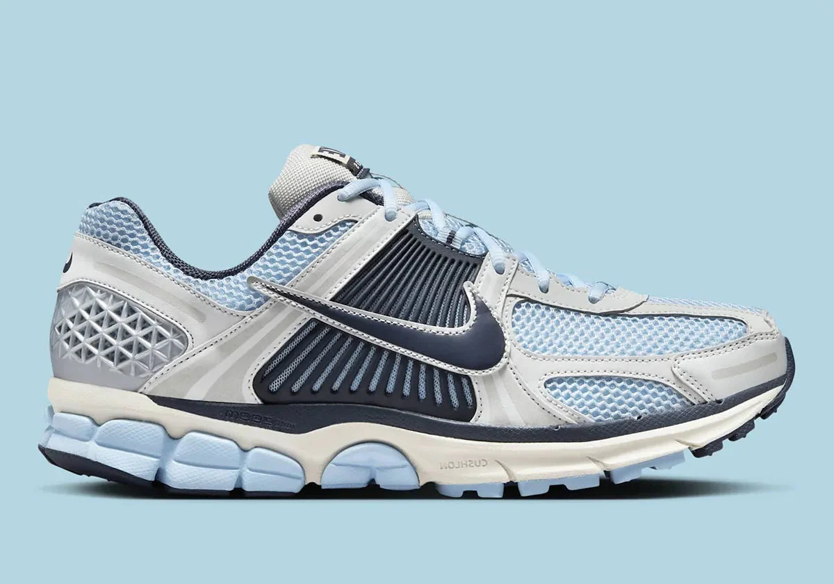 La sneaker Nike Zoom Vomero 5 “Psychic Blue” revisite avec audace la silhouette rétro-running culte en adoptant une palette déposée de bleu électrique “Psychic Blue”, agrémentée d’accents gris clair “Photon Dust” et ivoire “Pale Ivory”. Sa tige en mesh technique est renforcée par des superpositions synthétiques qui assurent maintien et confort tandis que la semelle intermédiaire intègre la technologie Zoom Air — gage d’un amorti réactif et fluide.