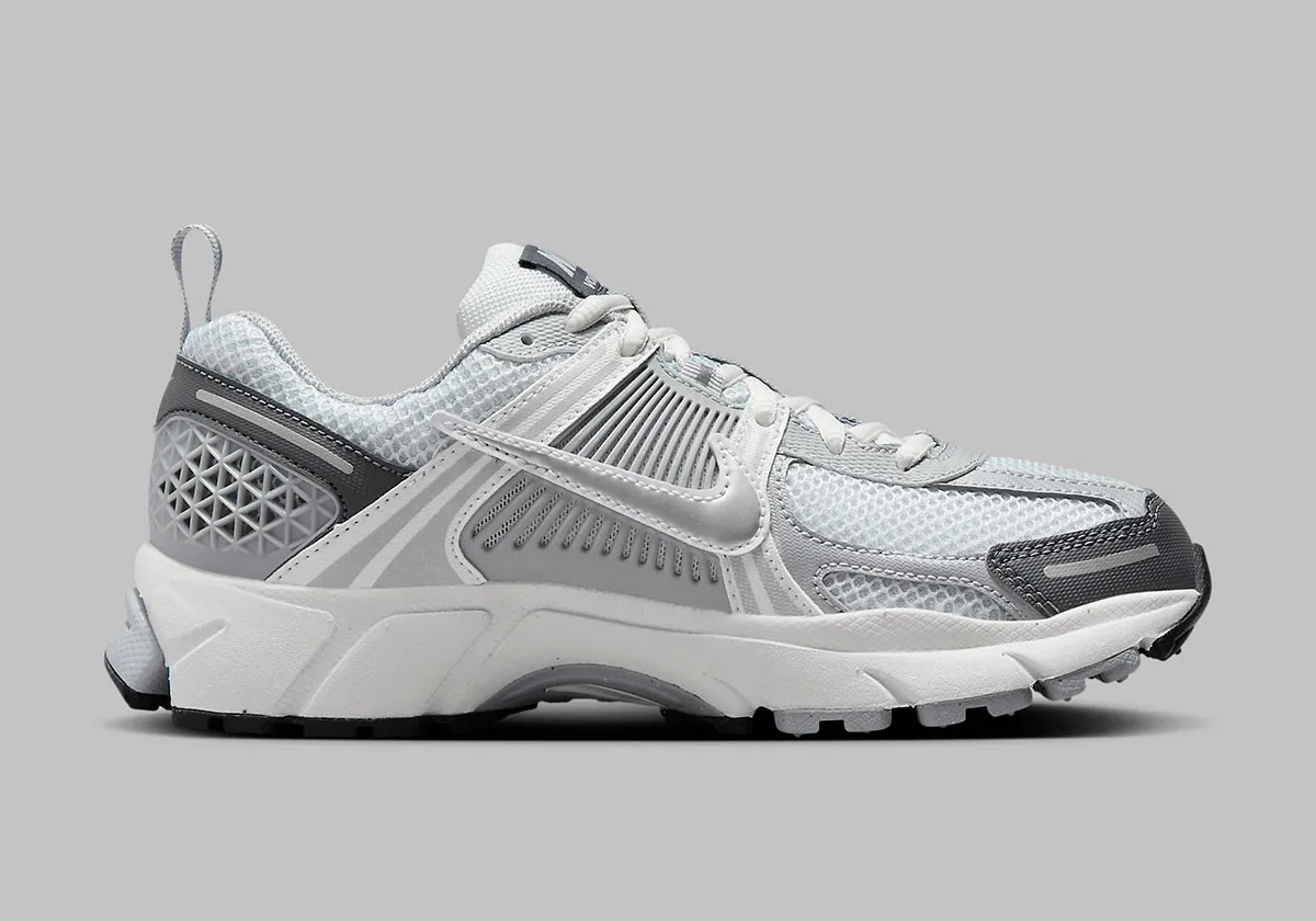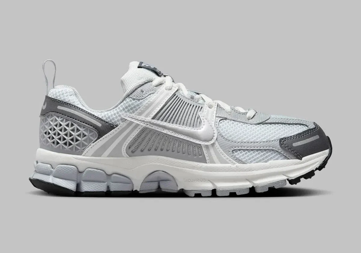 La Nike Zoom Vomero 5 Pure Platinum Metallic Silver (GS) incarne un équilibre raffiné entre héritage running et style urbain moderne. Sa tige en mesh “Pure Platinum” se pare d’empiècements argentés “Metallic Silver” et de touches gris foncé “Dark Grey”, pour un rendu minimaliste mais haut de gamme.