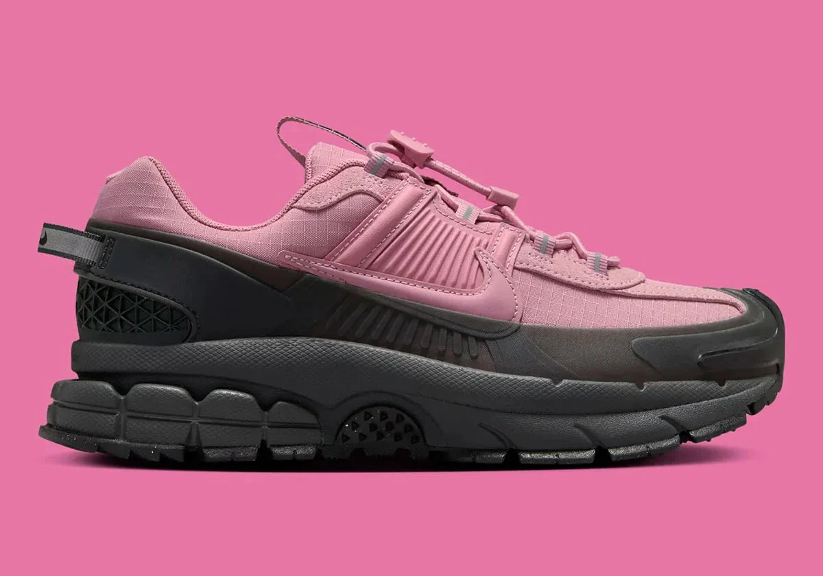 La Nike Zoom Vomero 5 Roam “Elemental Rose / Anthracite” revisite l’iconique silhouette Vomero avec une orientation plus “outdoor urbain” tout en conservant une élégance lifestyle raffinée. Sa tige en textile technique imperméable, teintée dans un subtil rose pâle “Elemental Rose”, est contrastée par des empiècements gris anthracite “Anthracite” sur la semelle et les renforts, apportant une profondeur visuelle et une touche premium.