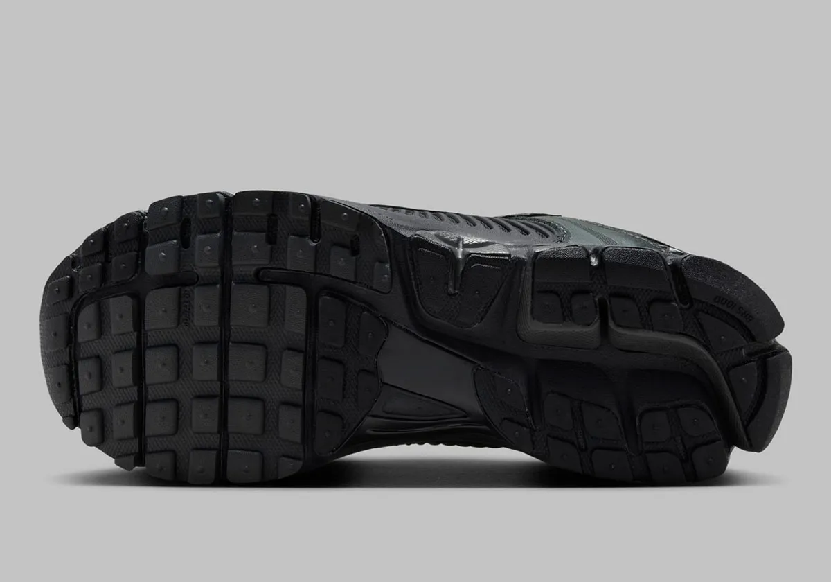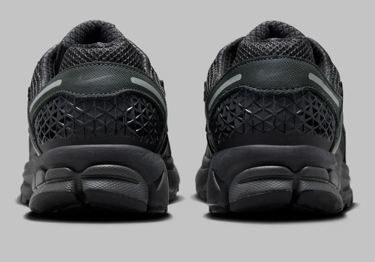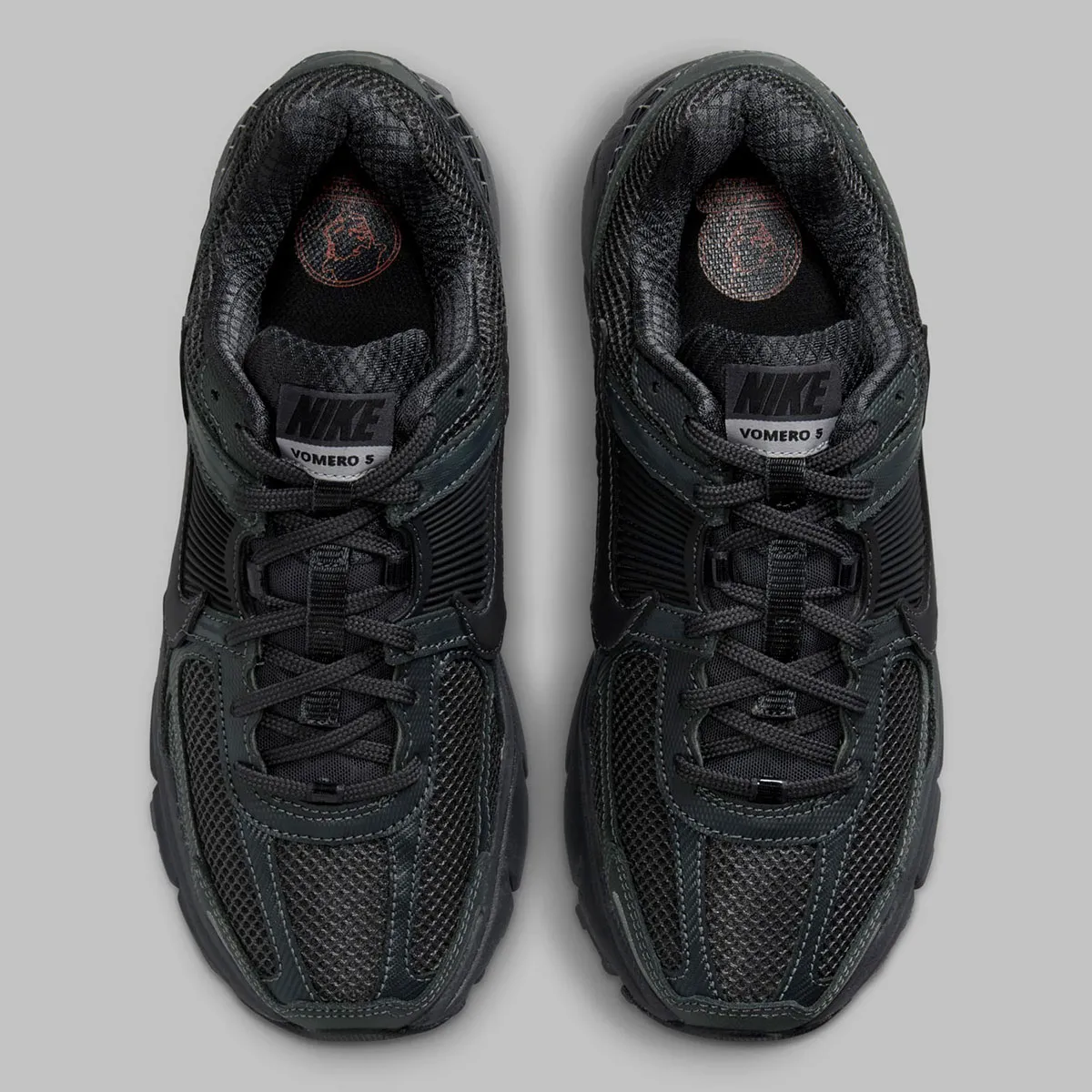 Nike Zoom Vomero 5 ‘Triple Black’ revisite avec sobriété et force la mythique silhouette de running de Nike. Arborant une palette intégralement noire, cette version combine tige en mesh respirant, superpositions en cuir synthétique et TPU pour une structure robuste qui reste élégante.