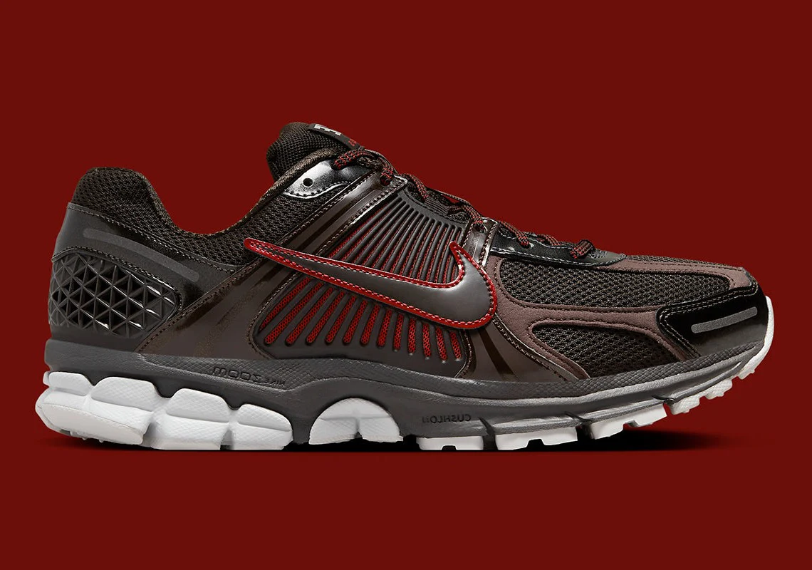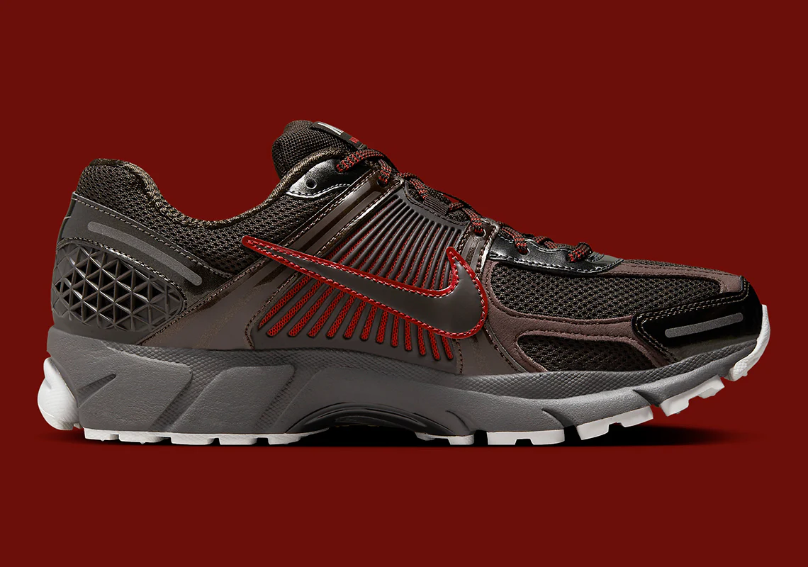 La Nike Zoom Vomero 5 Velvet Brown revisite l’iconique silhouette running avec une palette automnale profonde et sophistiquée. Sa tige en mesh respirant “Velvet Brown” se pare de superpositions en cuir et TPU chocolat foncé, offrant une richesse de textures et une allure à la fois technique et raffinée.
