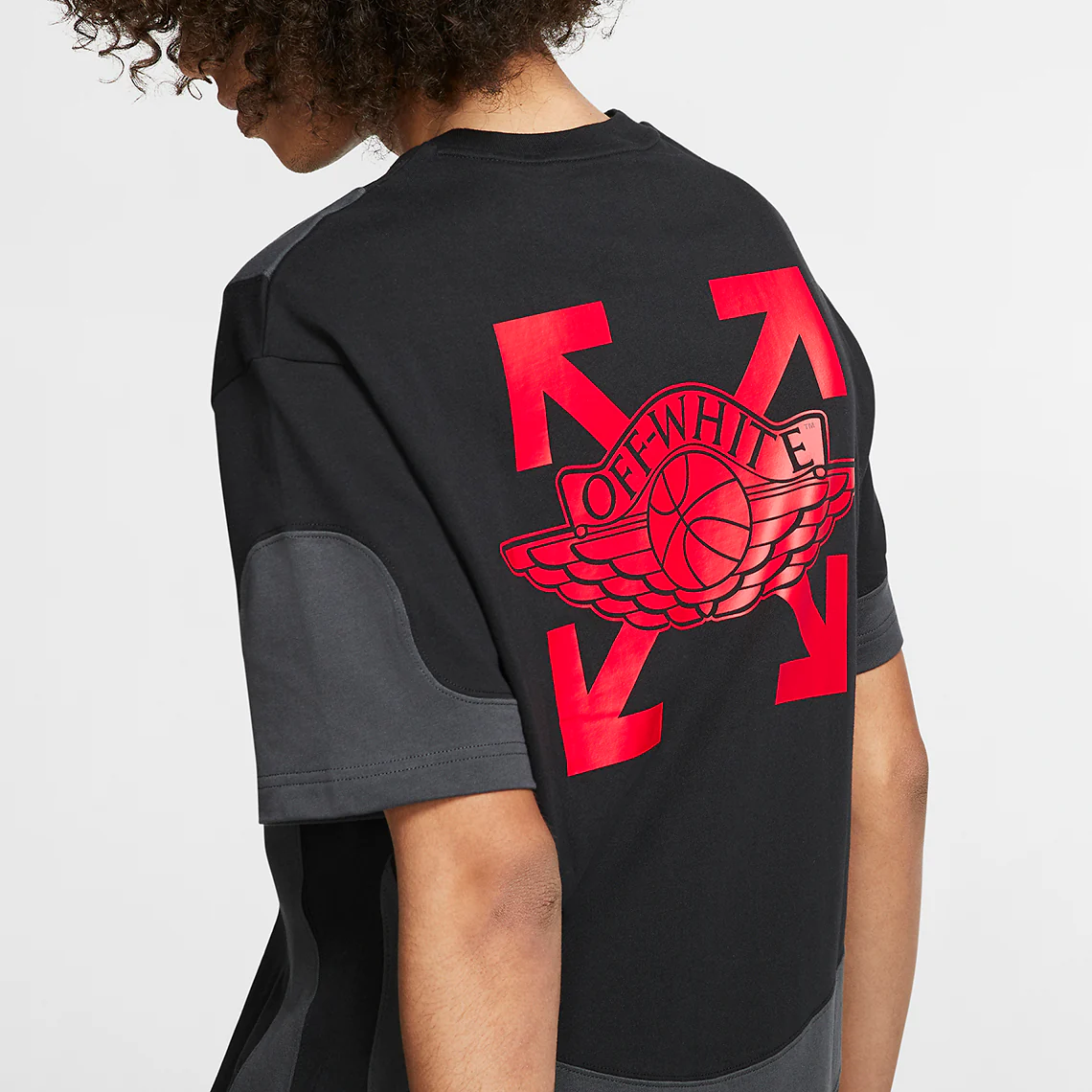 Ce T-shirt Off-White a été lancé avec quatre autres vêtements aux côtés de la Air Jordan 5 dans le cadre du week-end des étoiles de la NBA 2020. Le lancement comprenait un t-shirt, un sweat-shirt à capuche, une combinaison, une veste et un pantalon de survêtement qui portaient tous la marque Off-White et Jordan. Depuis sa sortie, ce t-shirt est devenu l’une des pièces Off-White les plus vendues.