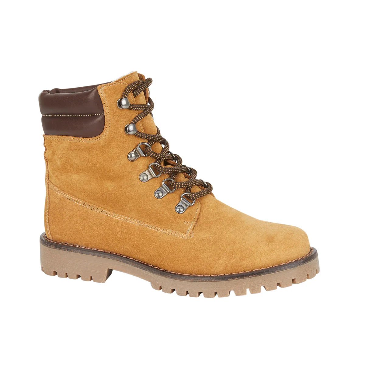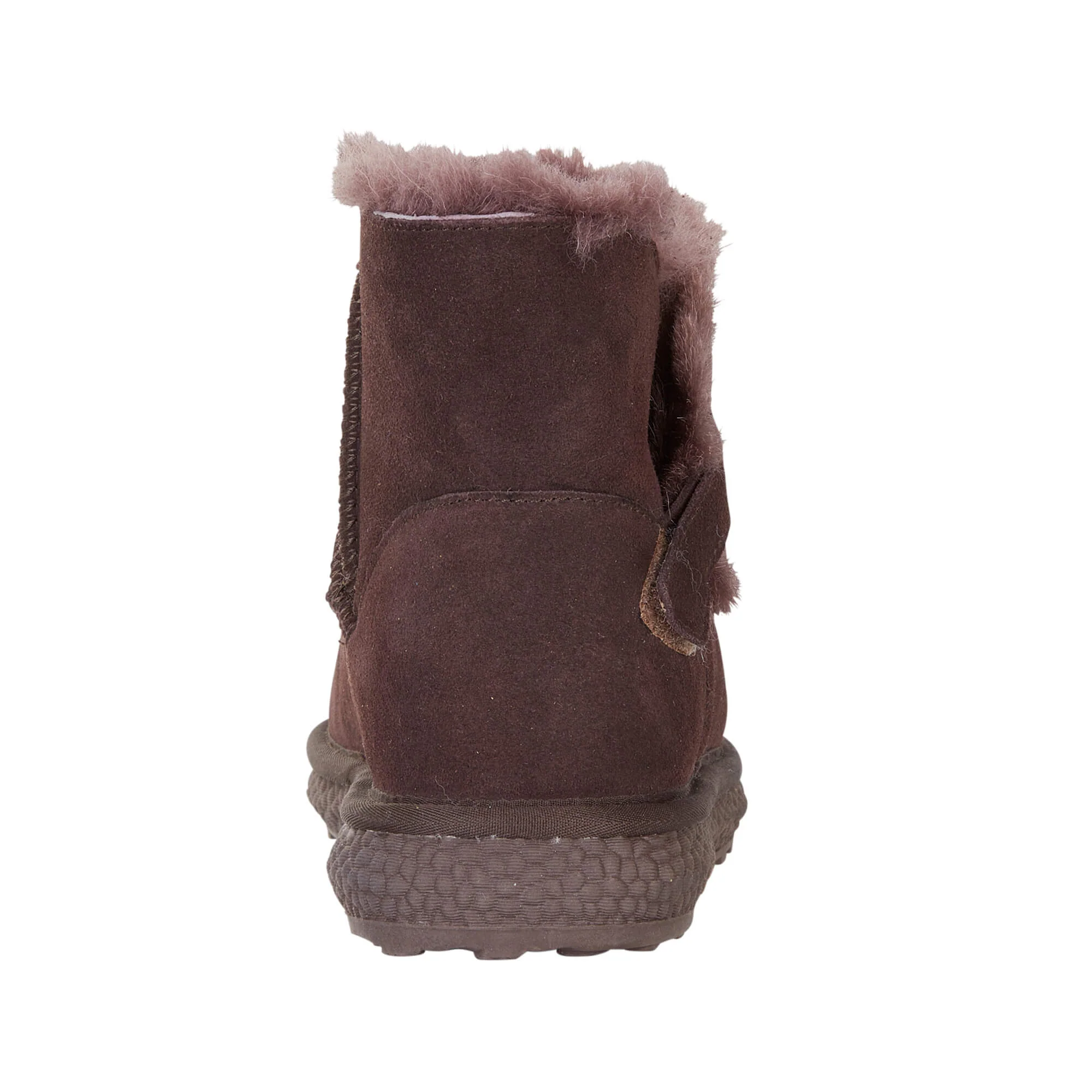 Our short sheepskin boot. Made with 100% double faced sheepskin throughout, including the insole, it has a velcro fastener at the side to make them easy to get on and off. It has an extra grippy non slip rubber sole which is perfect for icy conditions.